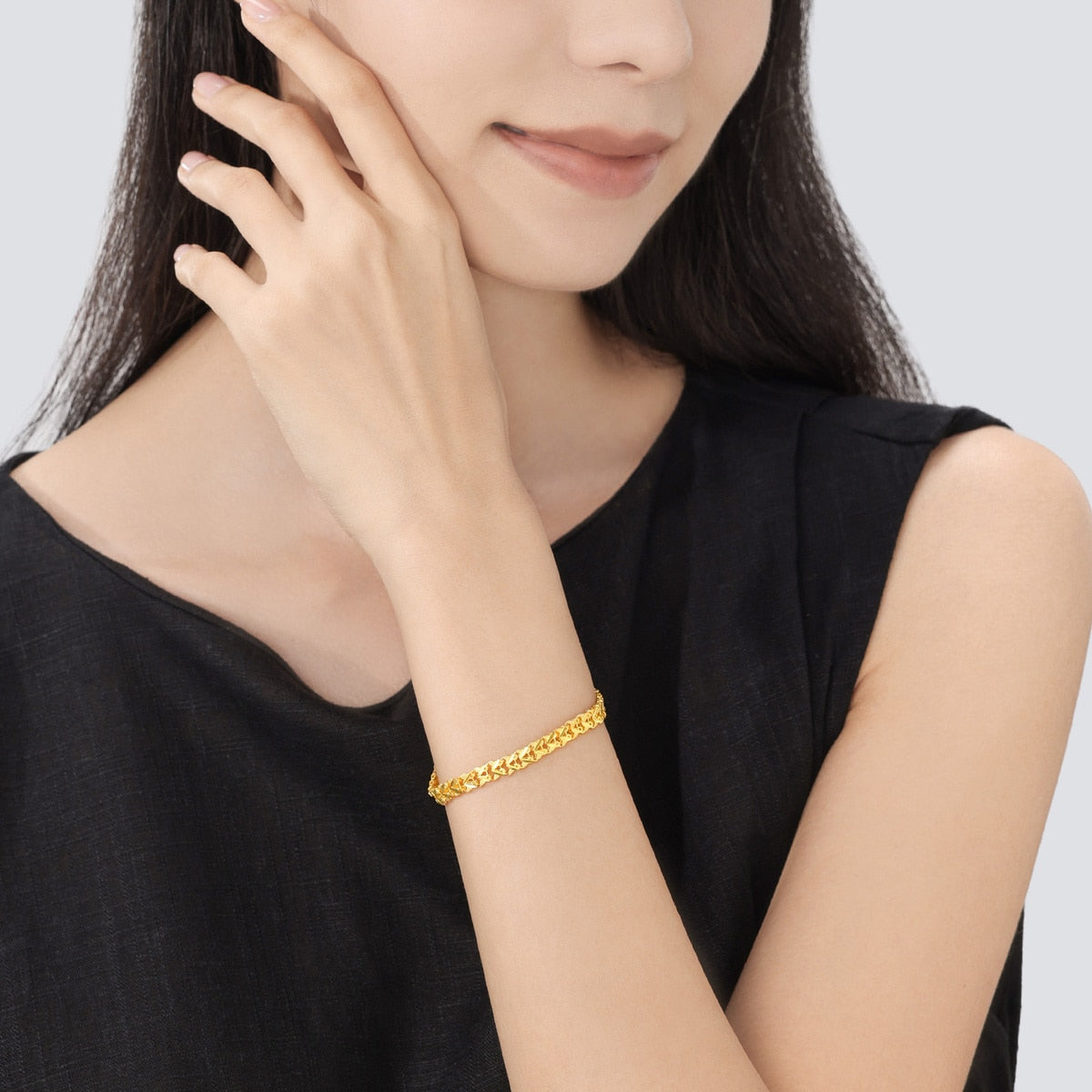 This 999.9 Gold Bracelet by Chow Sang Sang is a timeless and elegant piece, designed for both everyday wear and special occasions. Its smooth gold finish adds a luxurious touch.