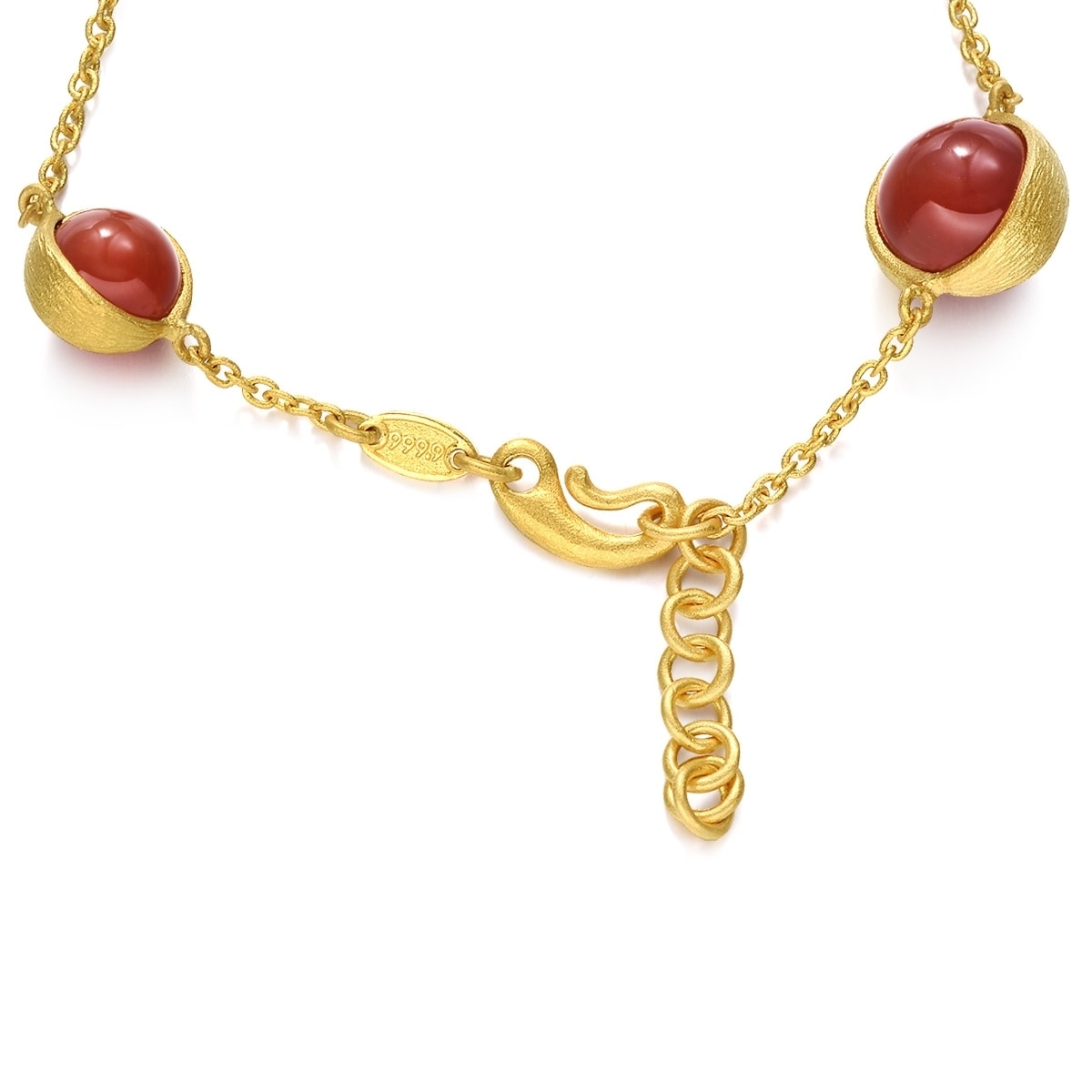 Made in 999.9 Gold with red agate accents. Bracelet length: 19cm, weighing approximately 0.269 tael (~10.068g).
