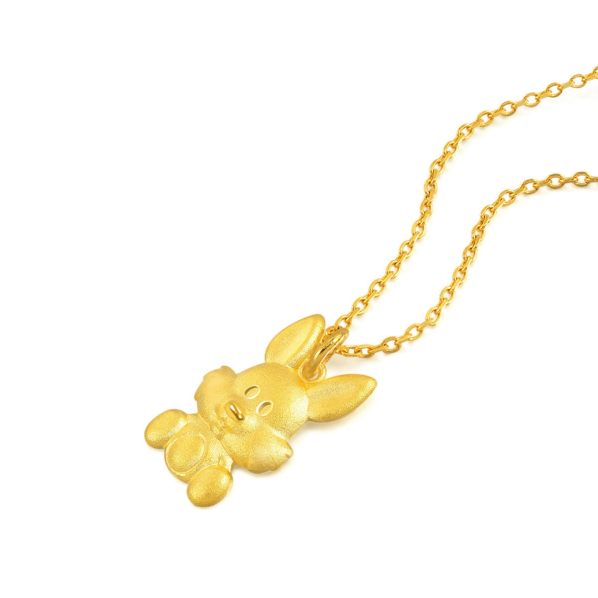 This New Year & Chinese Zodiac 999.9 Gold Rabbit Pendant by Chow Sang Sang brings the zodiac Rabbit to life in a playful and adorable design. The three-dimensional craftsmanship adds depth and character, making this pendant a delightful way to keep the charm and innocence of childhood close.