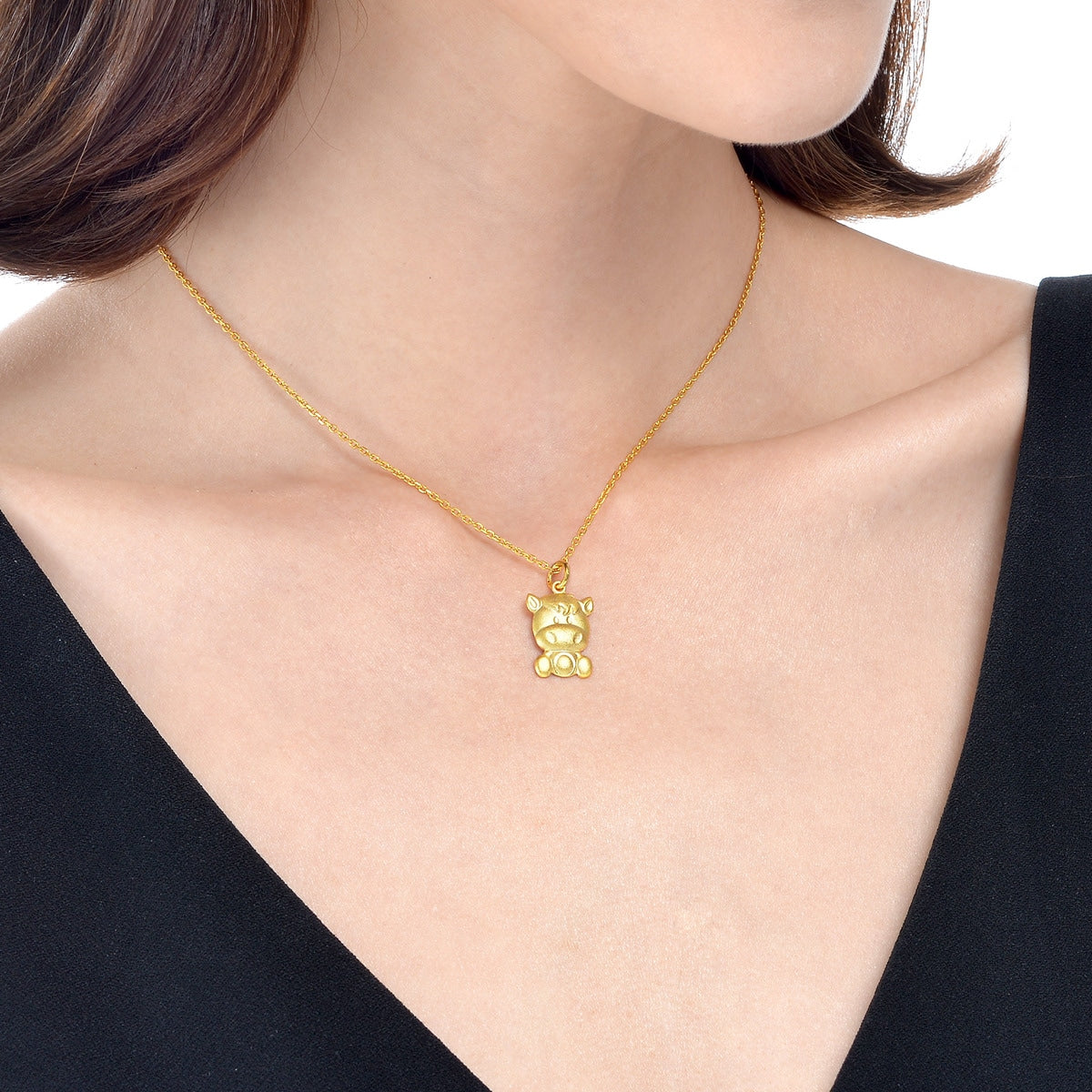 This New Year & Chinese Zodiac 999.9 Gold Horse Pendant by Chow Sang Sang features the zodiac Horse, transformed into a cute and spirited cartoon version. The detailed three-dimensional craftsmanship gives this pendant a vivid and lively look, symbolizing the energetic spirit of the zodiac.