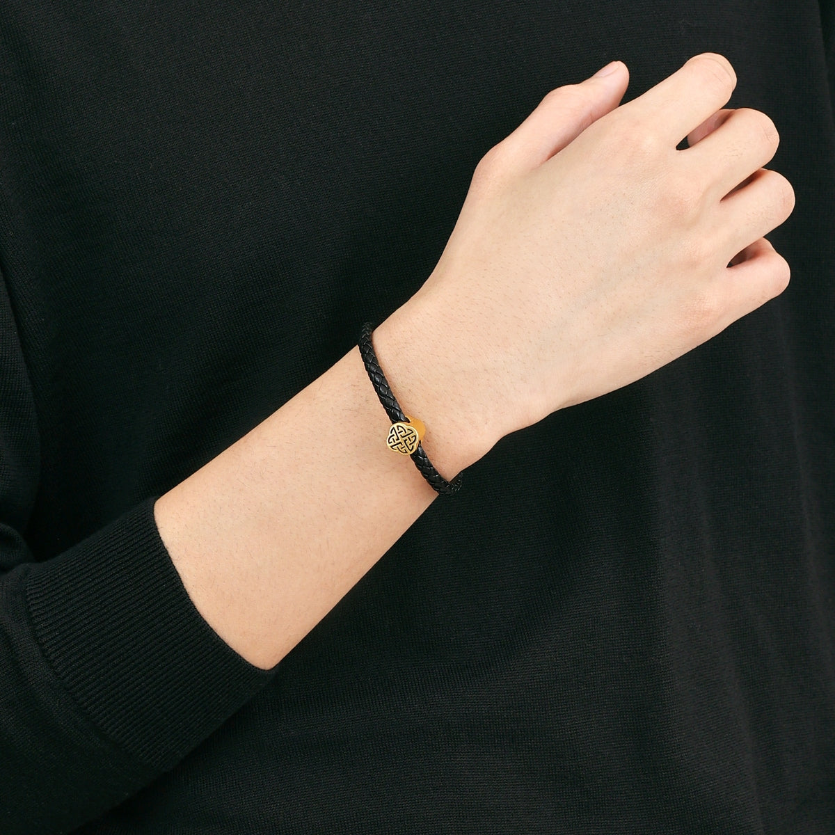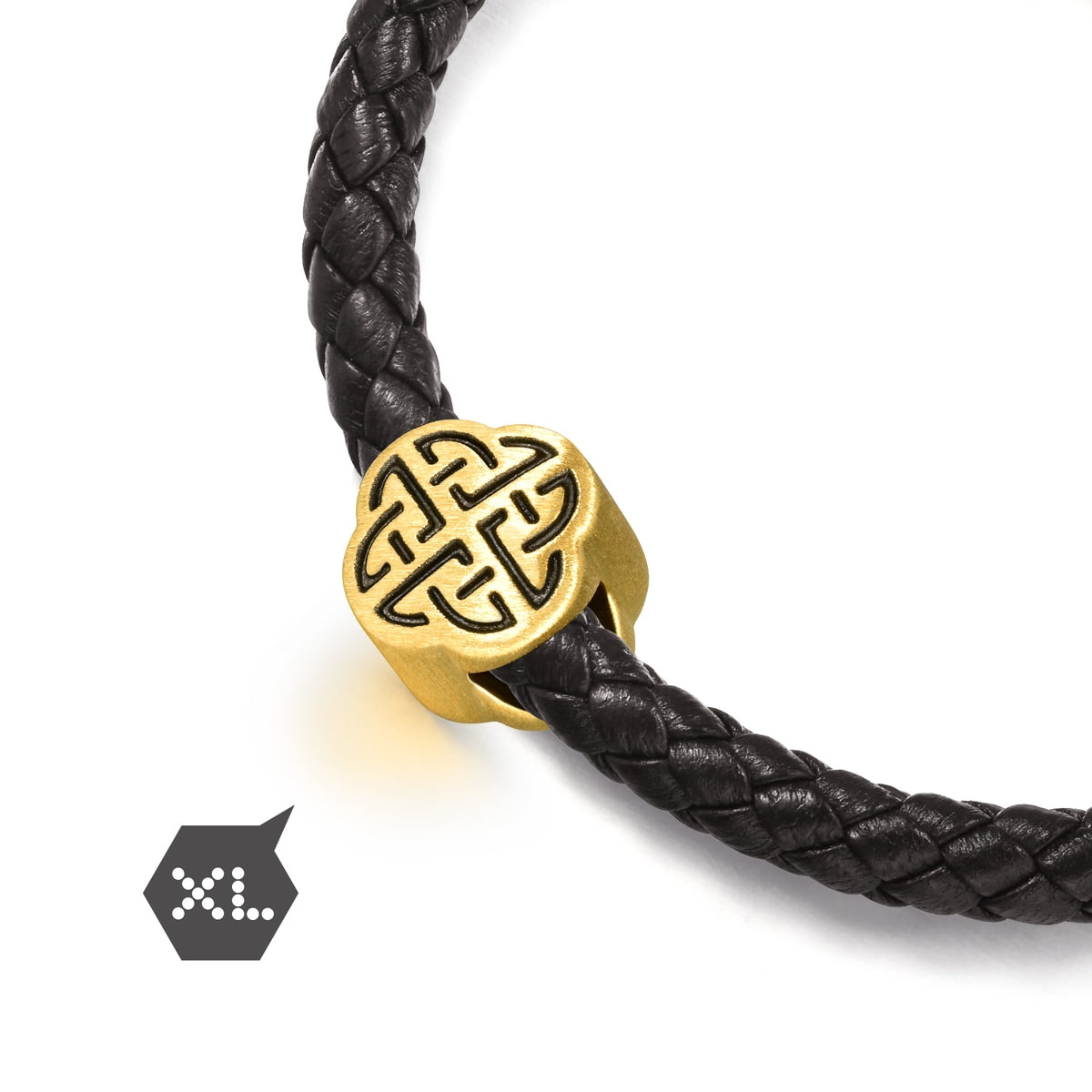 This Noir 999 Gold Harmony Charm by Chow Sang Sang is part of the Charme Tattoo collection, inspired by tattoos and Celtic Knots. Hand-engraved with black rhodium electroplating, this design represents the perfect balance between human and nature, with four heart-shaped corners symbolizing the elements of water, fire, earth, and air. The fine brushed texture adds an elegant finish to this alchemistic symbol of harmony.
