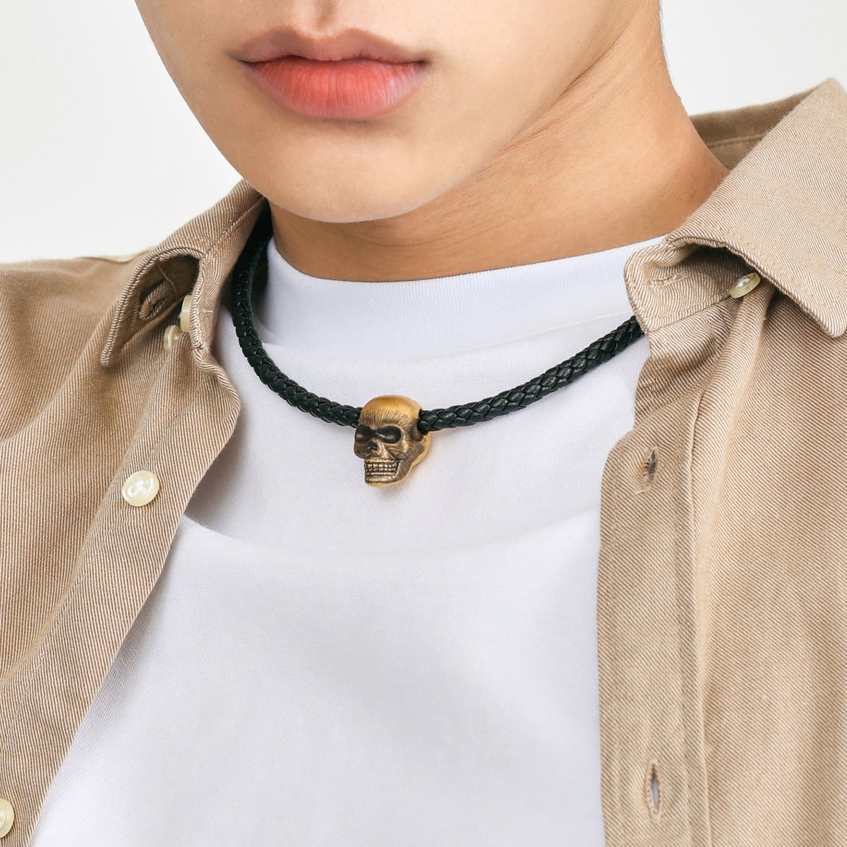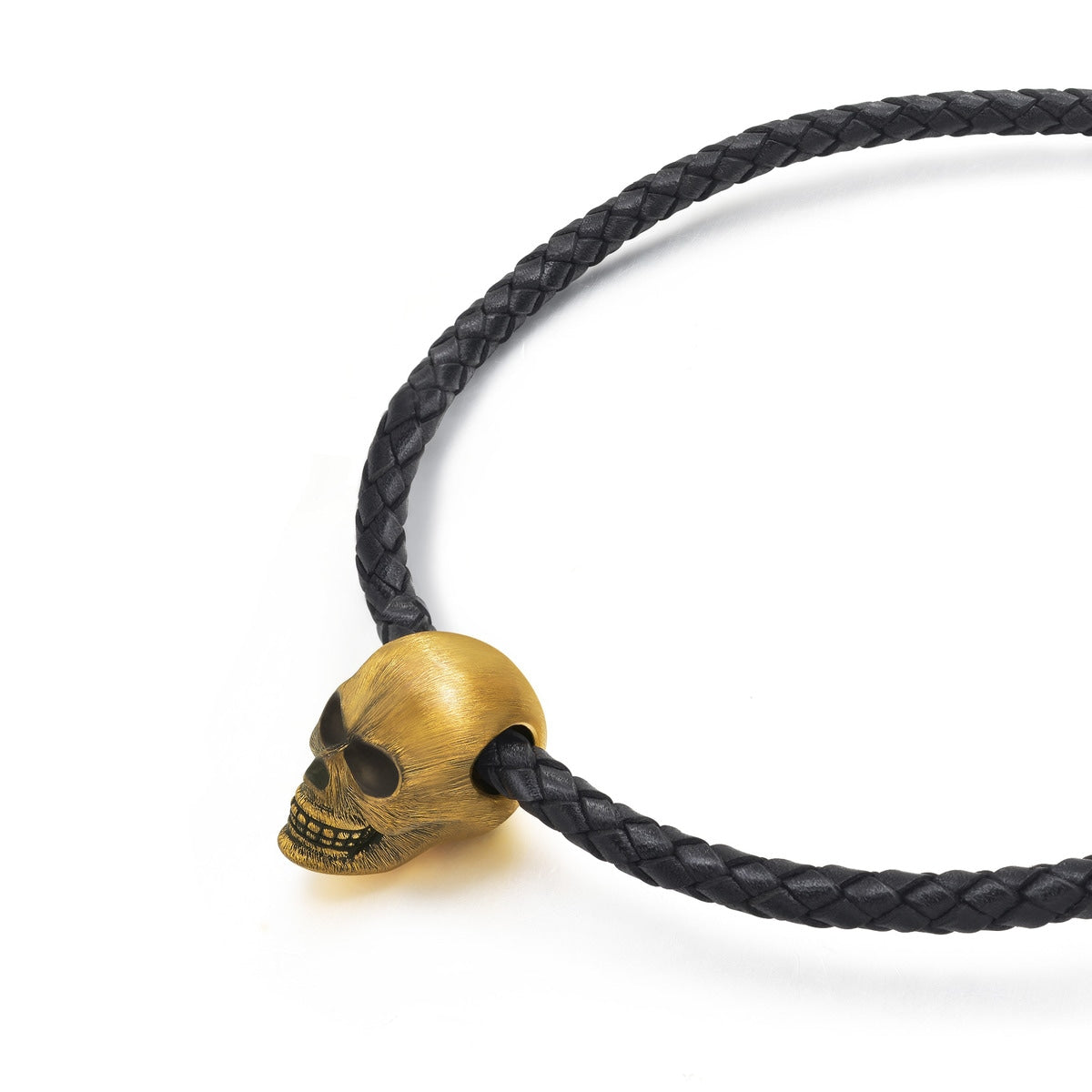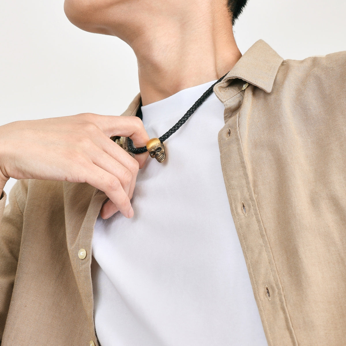This Skull 999 Gold Necklace by Chow Sang Sang is a bold, avant-garde piece created with a three-dimensional gold skull using electroforming techniques. The facial features are artistically detailed with rhodium electroplating, adding masculine contours. Paired with authentic leather, this necklace exudes charisma and serves as a striking fashion statement for both men and women.