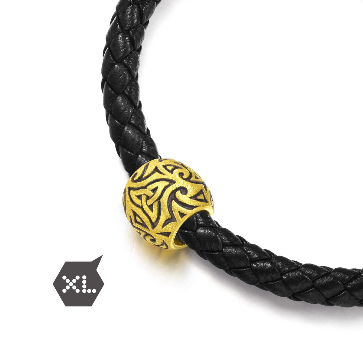 This Noir 999 Gold Volition Charm by Chow Sang Sang draws inspiration from tattoo designs, featuring the Trinity pattern that symbolizes the holy unity of Father, Jesus Christ, and the Holy Spirit. The hand-applied black rhodium electroplating and brushed texture add depth to this meaningful charm, representing spiritual strength and unity.