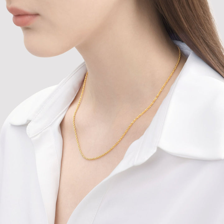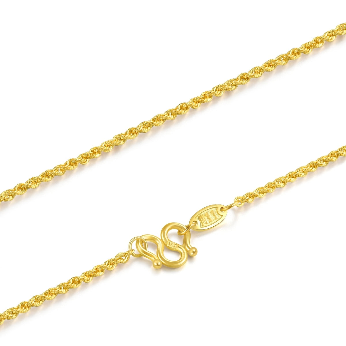 This 999.9 Gold Necklace by Chow Sang Sang is a classic and elegant piece, perfect for any occasion. Its minimalist design makes it versatile, suitable for both casual and formal wear.