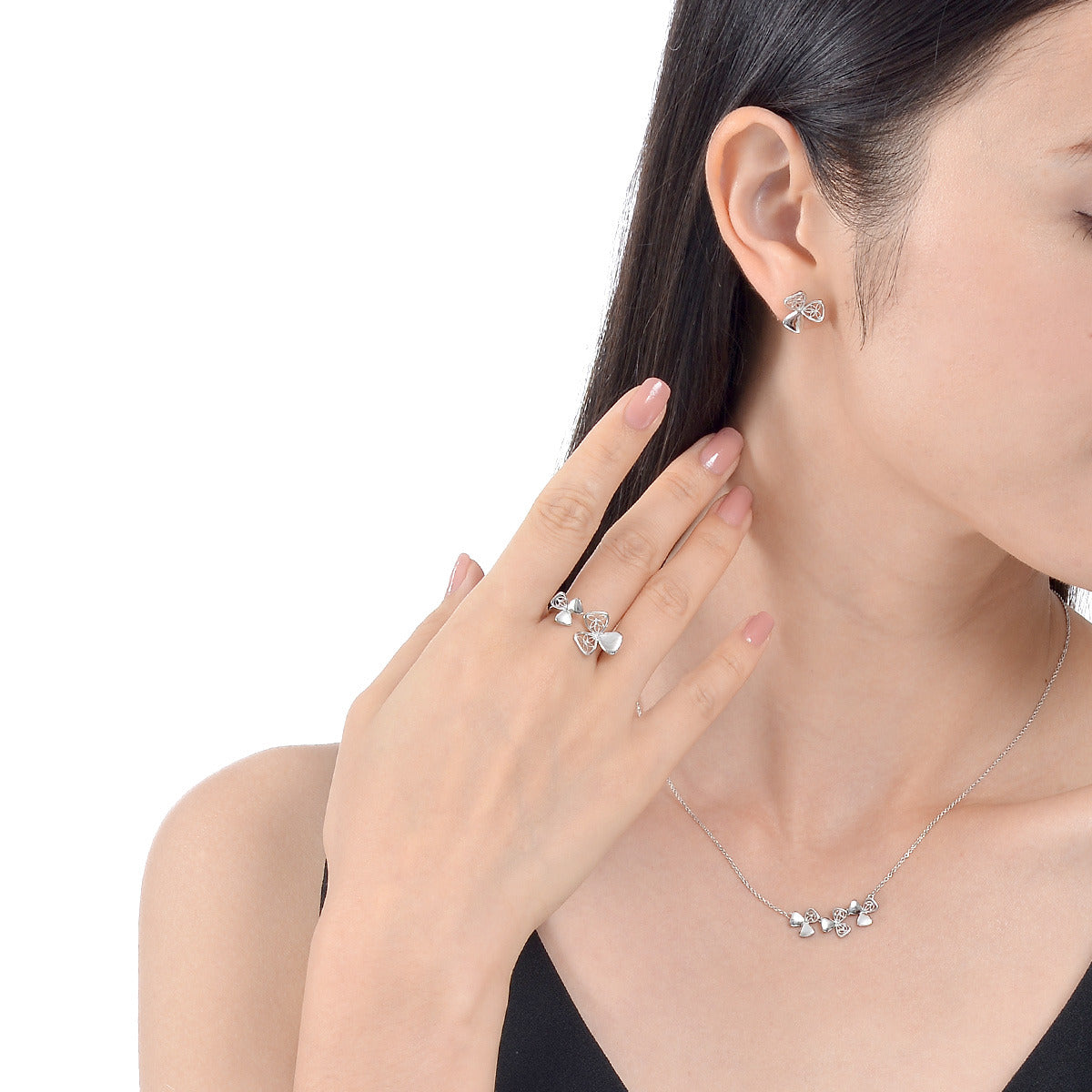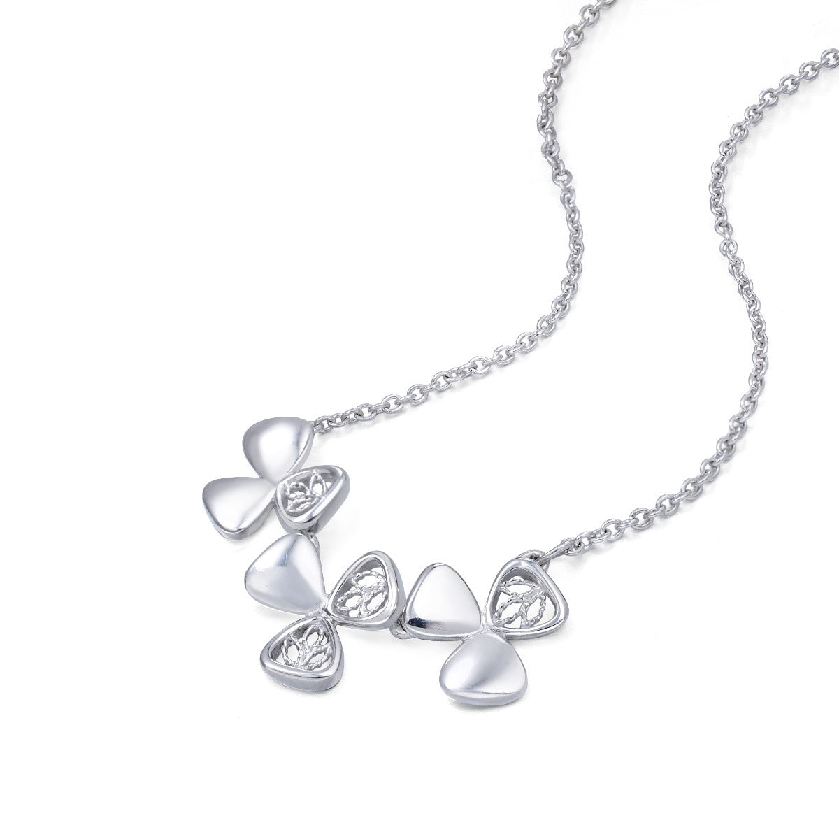 This 950 Platinum Necklace by Chow Sang Sang draws inspiration from the contours of the Trillium flower, with an asymmetrical design that adds kinesthetic energy. The hollow carving techniques from Indian Orissa traditions are expertly applied, with sophisticated leaf vein patterns adding grace and femininity to the platinum necklace.