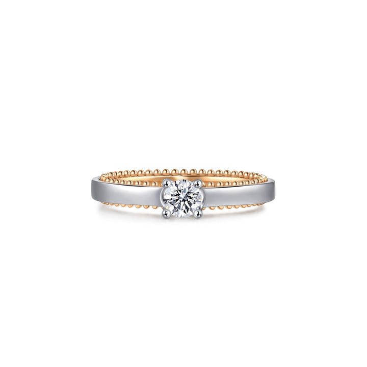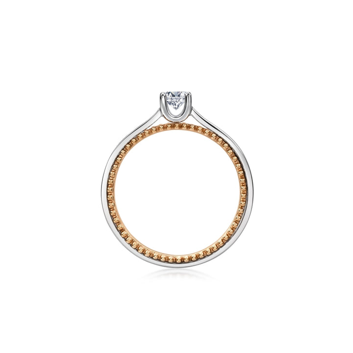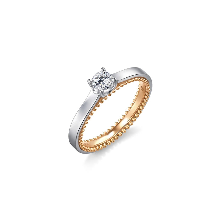 This Majesty 18K White & Red Gold Diamond Ring by Chow Sang Sang draws inspiration from princess glamour, with 18K white and rose gold entwined in a captivating contrast. The band is immaculately rimmed with round beads, adding texture and chic exquisiteness. A sparkling coronation of love for her.