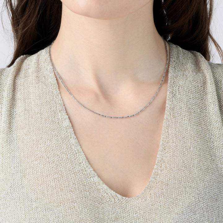 This 18K White Gold Necklace by Chow Sang Sang is a versatile accessory that adds fashionable style to any look. Whether worn alone for a minimalist touch or styled with an expressive pendant, this necklace offers timeless elegance.