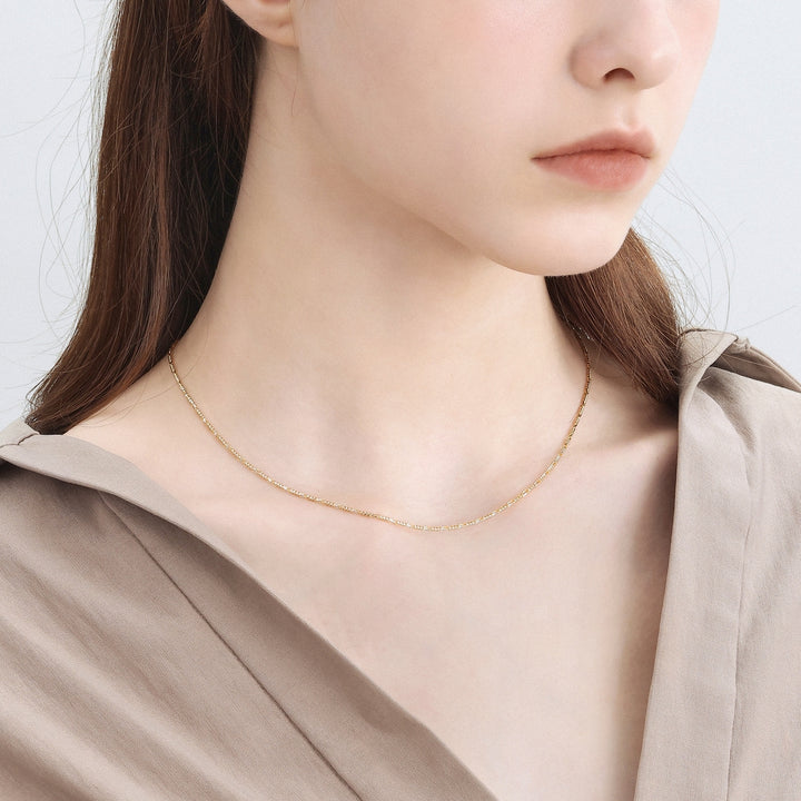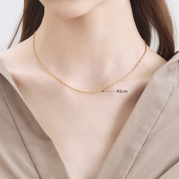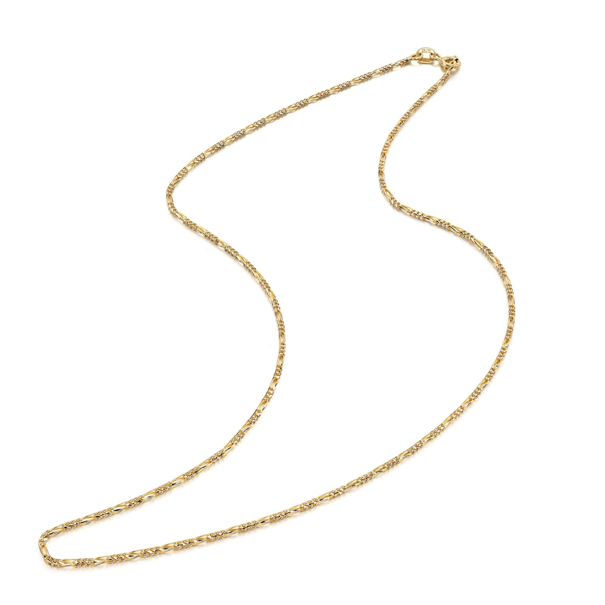 This 18K Yellow & White Gold Necklace by Chow Sang Sang offers a two-tone design that adds versatility to any jewelry collection. Whether worn alone or with a pendant, this necklace exudes a fashionable and elegant charm.