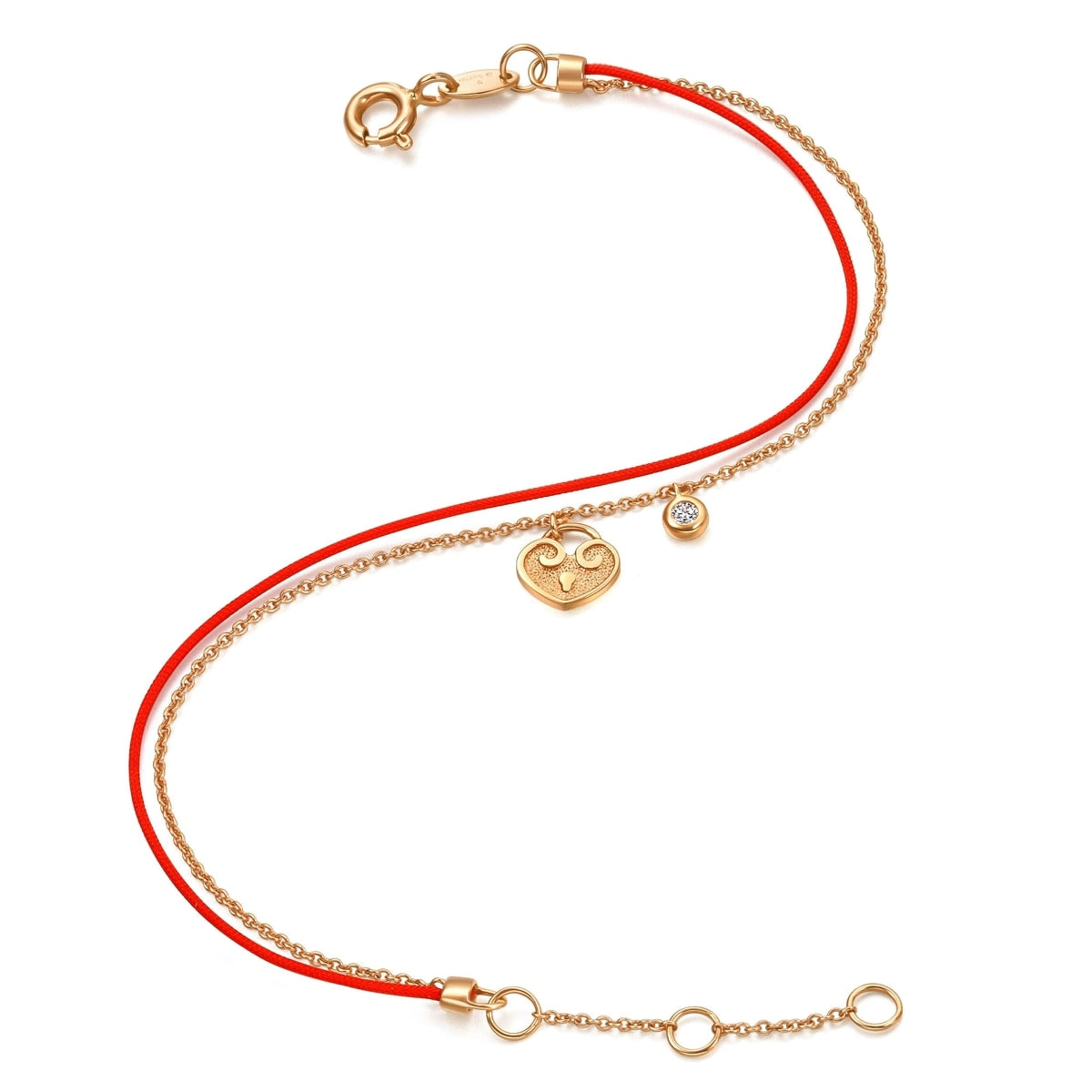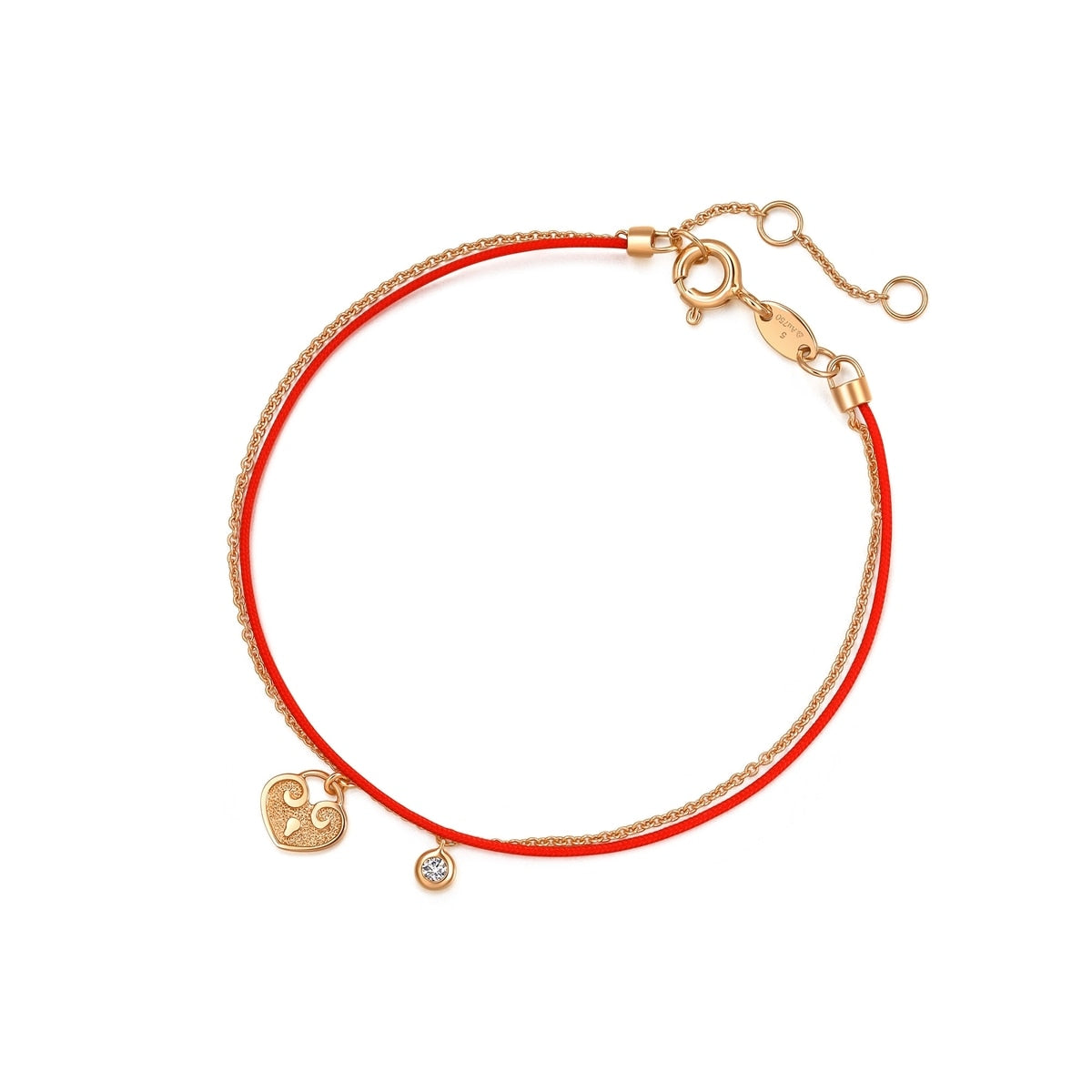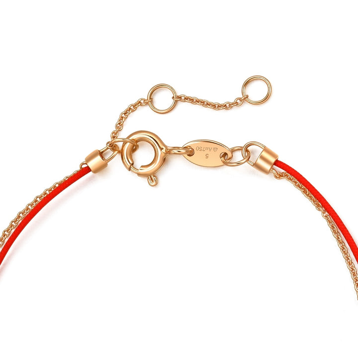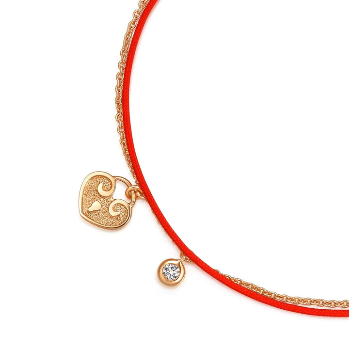 This Love Knot 18K Rose Gold Diamond Bracelet by Chow Sang Sang celebrates the love of life with its diamond-set love lock and red rope. The 18K rose gold chain and diamond-set charm symbolize the lover's knot, combining tradition with modern style and felicity.