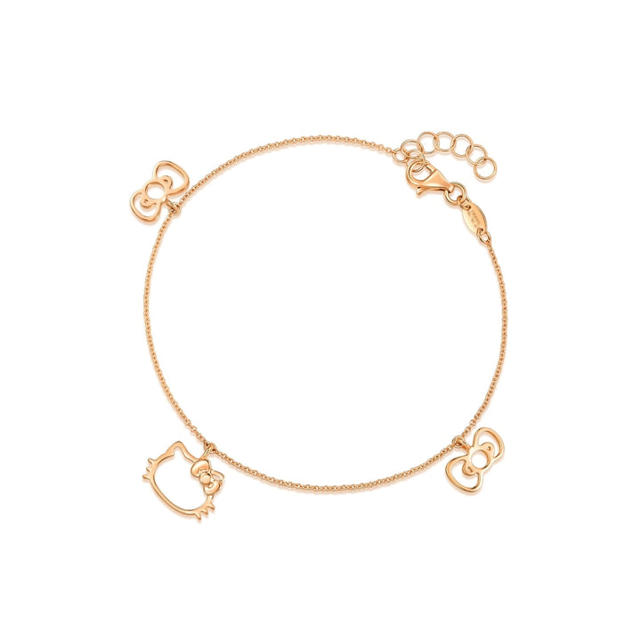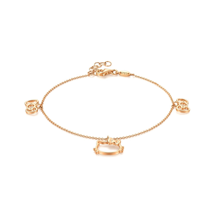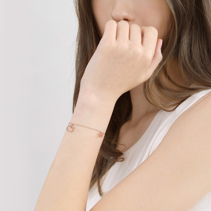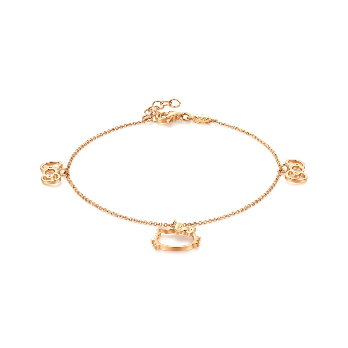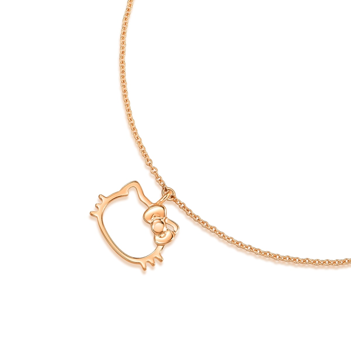 This 'Hello Kitty' 18K Rose Gold Bracelet by Chow Sang Sang is a trendy and delicate accessory that highlights Hello Kitty's sweet contours and iconic ribbon. The minimalist design offers a playful yet elegant look, making it a perfect piece for daily wear.