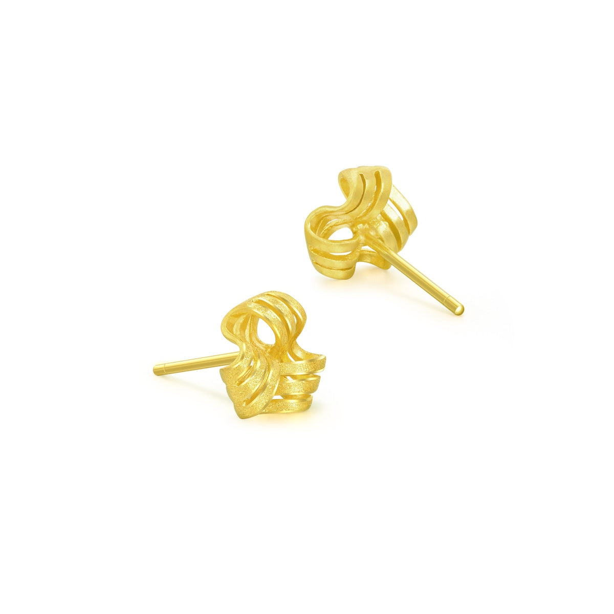 Style Notes: These '999.9 Gold Earrings by Chow Sang Sang' showcase a three-dimensional overlapping design with a matte finish, highlighting the intricate craftsmanship. Effortlessly blending elegance and fashion, these earrings make a refined addition to any look.