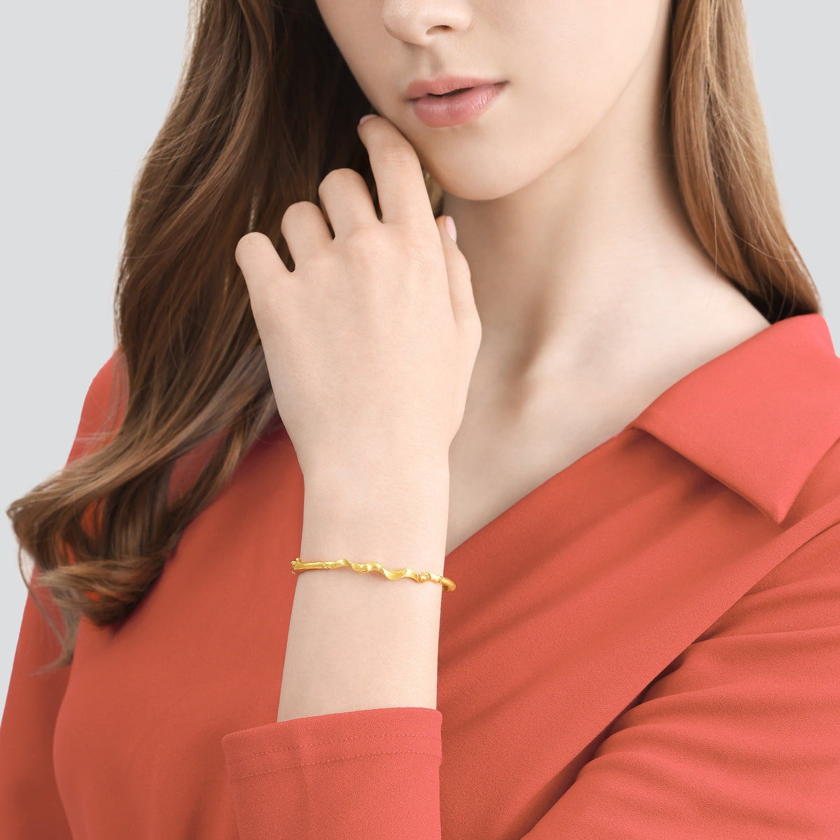 Style Notes: This '999.9 Gold Bangle by Chow Sang Sang' is a luxurious and elegant statement piece, designed in pure gold.