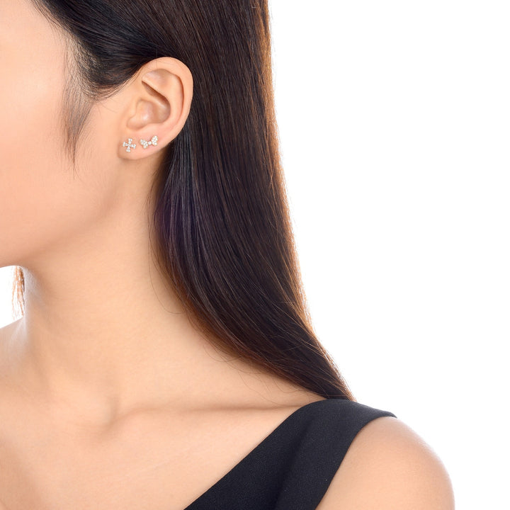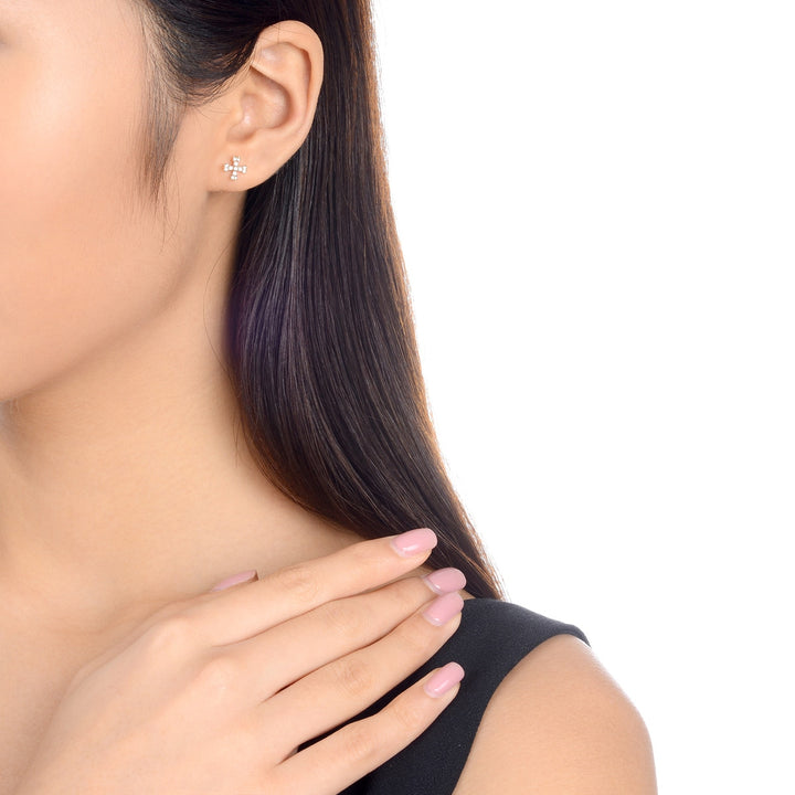 Ear Play' 18K Red Gold Diamond Cross Single Earring