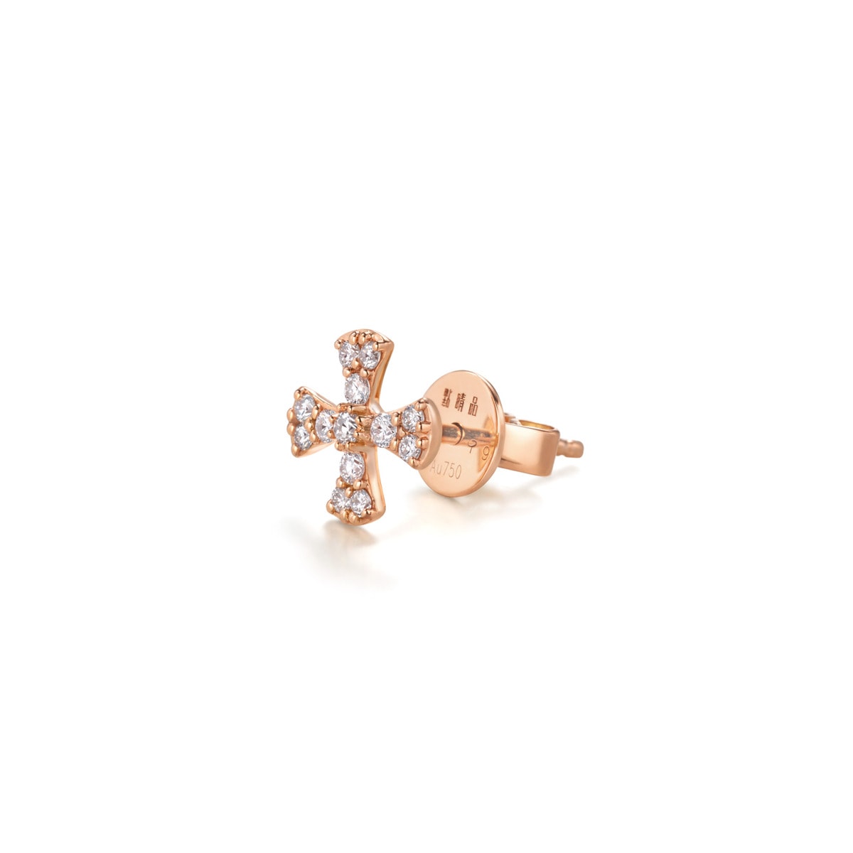 This 'Ear Play' 18K Red Gold Diamond Cross Single Earring by Chow Sang Sang offers versatile mix-and-match options, allowing you to craft a personalized statement with its elegant cross design.