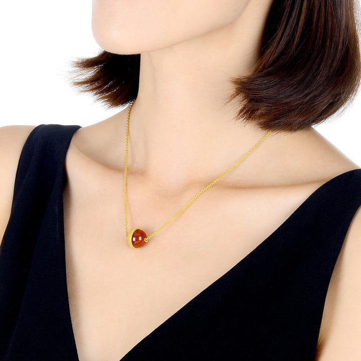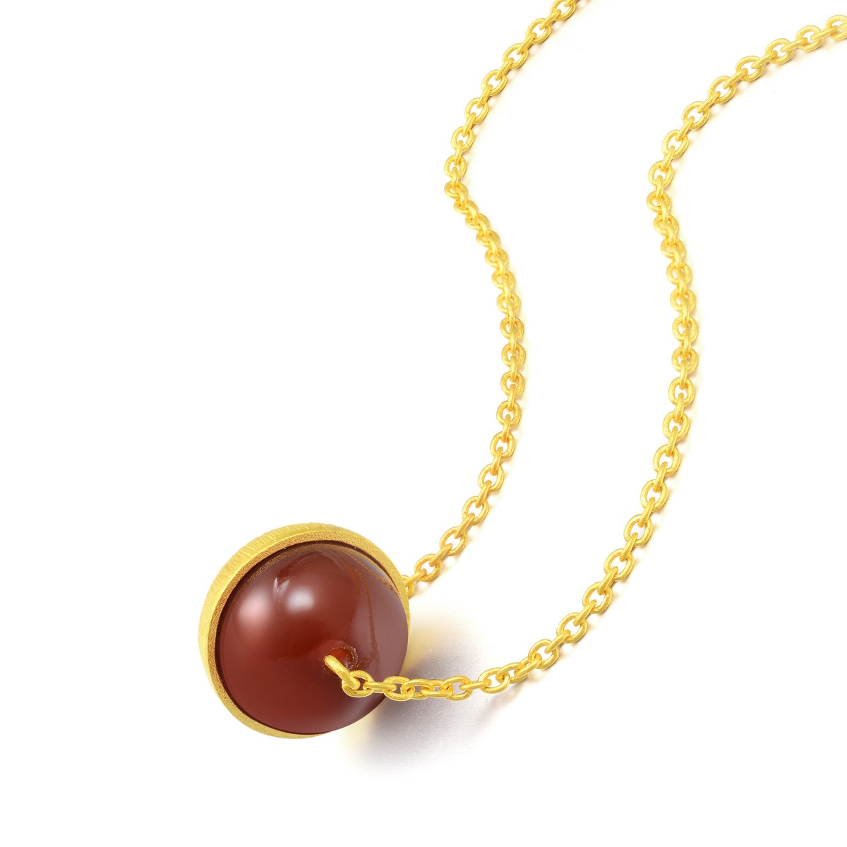 This '999.9 Gold Necklace by Chow Sang Sang' presents a cosmopolitan elegance with its neat circular design, blending the richness of red agate with the timeless grace of gold—a perfect piece for career-driven women.