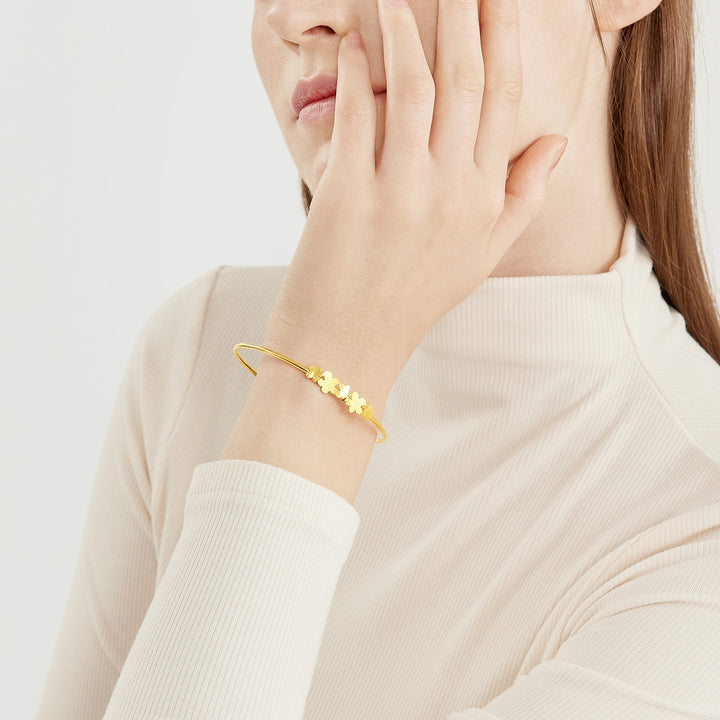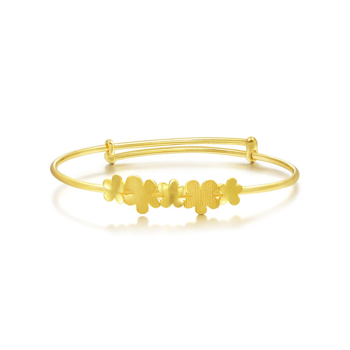The 'Floral' 999.9 Gold Bangle by Chow Sang Sang' features a delicate floral design that adds a graceful touch to your accessory collection, perfect for both everyday wear and special occasions.