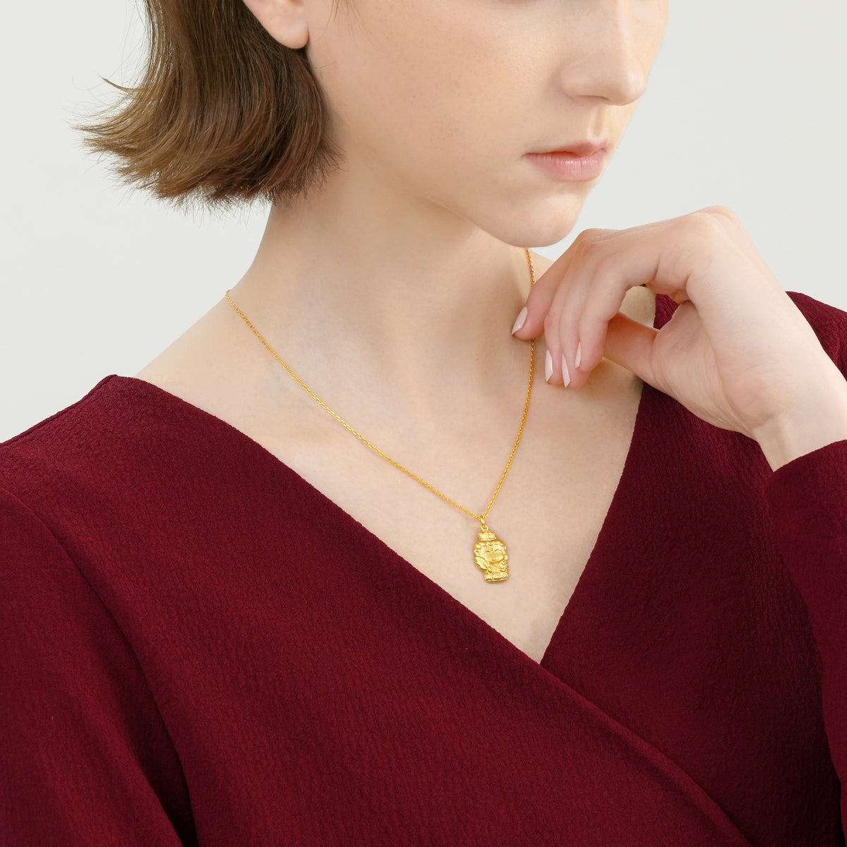 The 'Fate with Buddha' 999.9 Gold Boundless Space Buddha (Ox & Tiger) Pendant by Chow Sang Sang' is for those born in the Year of the Tiger. This pendant represents wisdom and fortune, showcasing exquisite craftsmanship through relief technology.