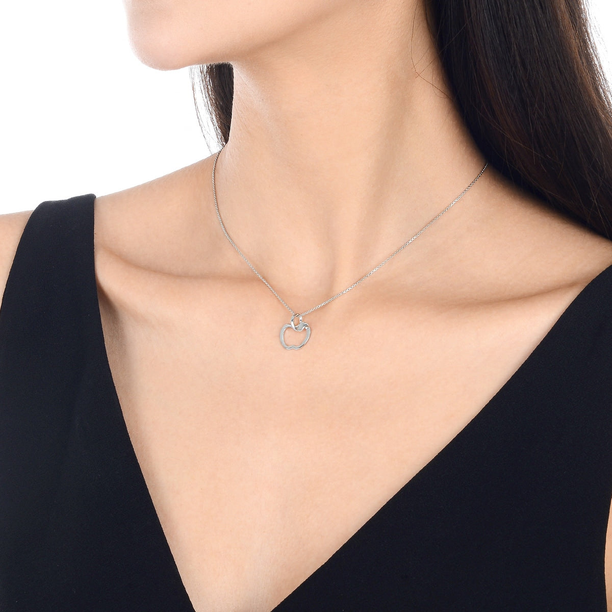 The '950 Platinum Apple Pendant by Chow Sang Sang' features a hollow apple design, symbolizing the romantic phrase 'you’re the apple of my eye.' This platinum pendant is perfect for daily wear and serves as a meaningful gift, embodying blessings of peace and happiness.