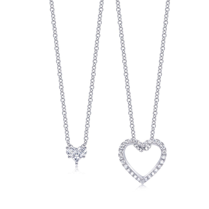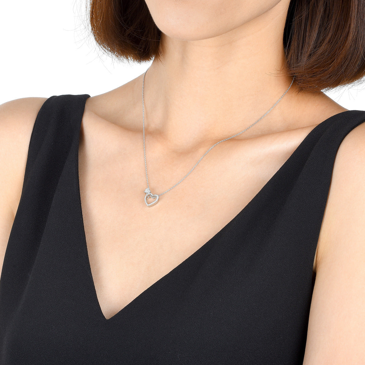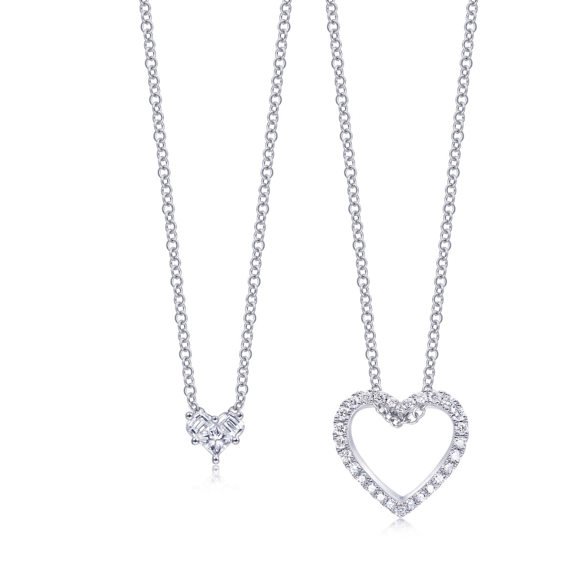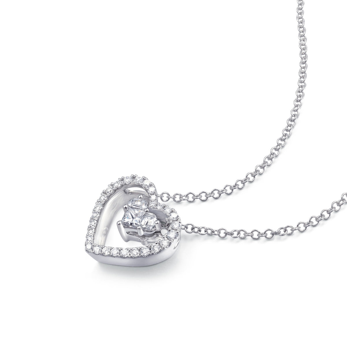 The '18K White Gold Diamond Necklace by Chow Sang Sang' features two overlapping hearts, symbolizing love and connection. The separable design allows versatility, showcasing both stones elegantly together or apart. (VS1-VS2 Clarity; Color Grade: G-H)