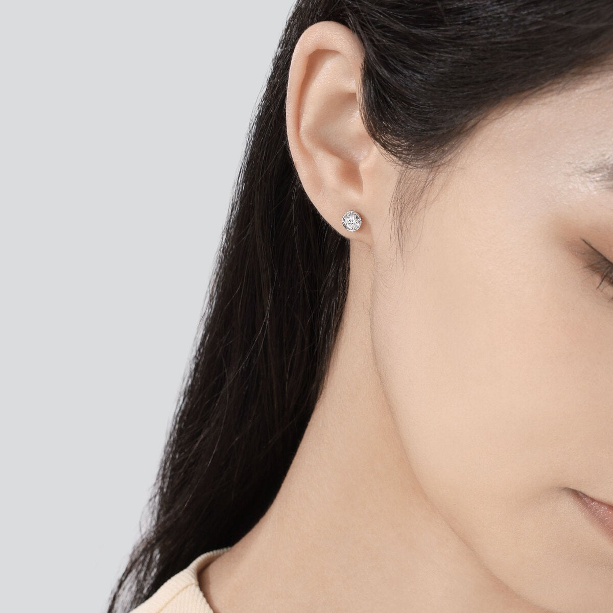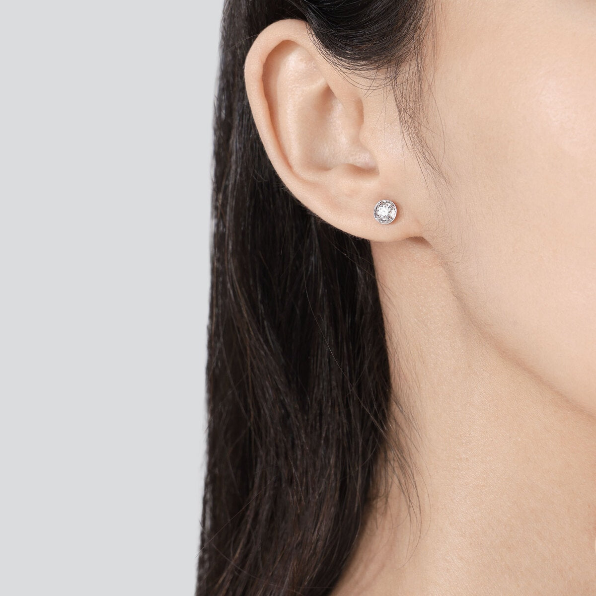 Ear Play' 18K White Gold Round Brilliant-Cut Diamond Single Earring