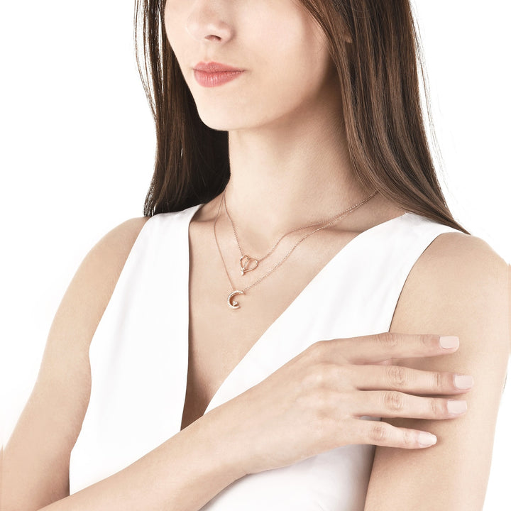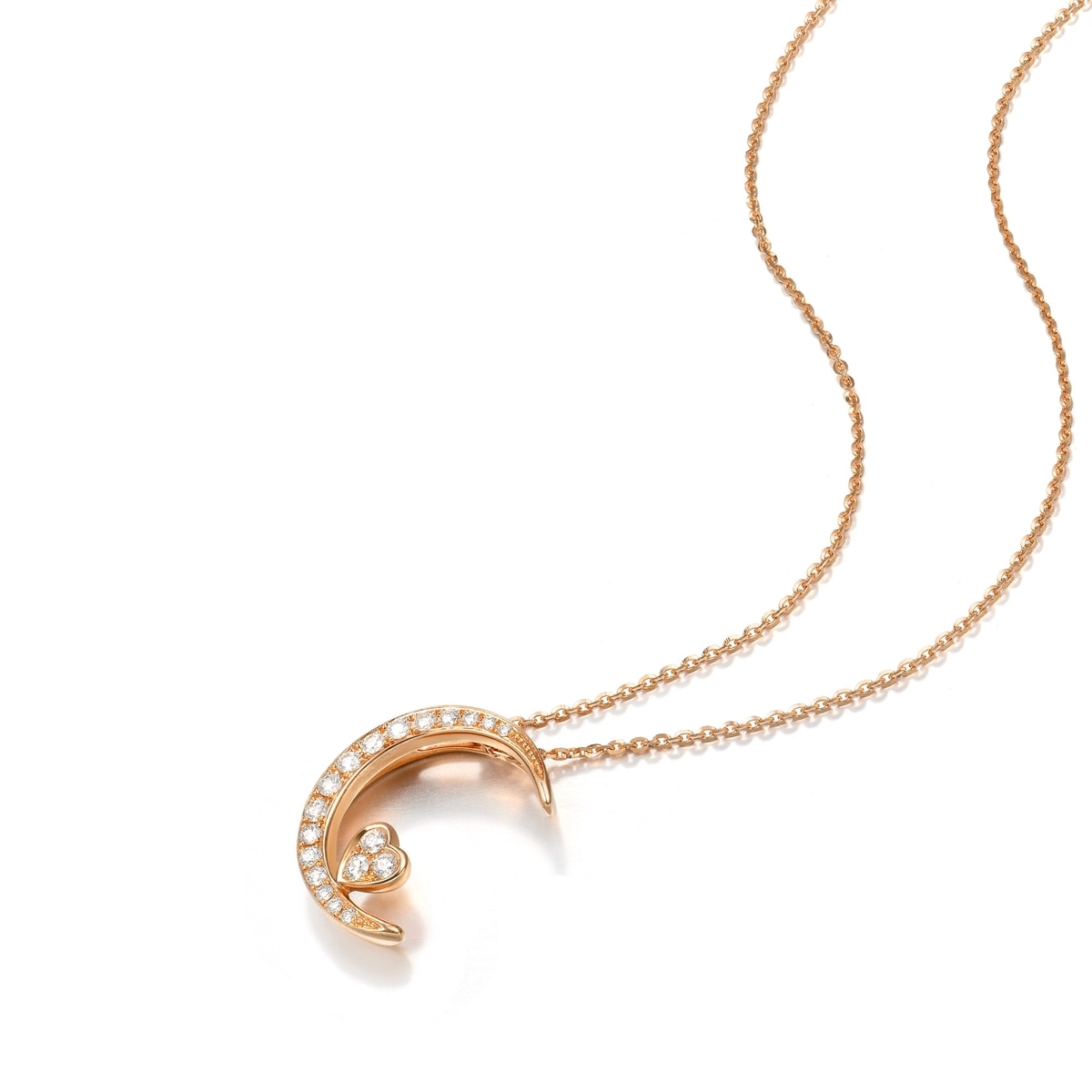 This 18K Rose Gold Diamond Necklace by Chow Sang Sang is inspired by the romantic classic “The Moon Represents my Heart.” The waxing moon design, set with diamonds, symbolizes deep affection and love.