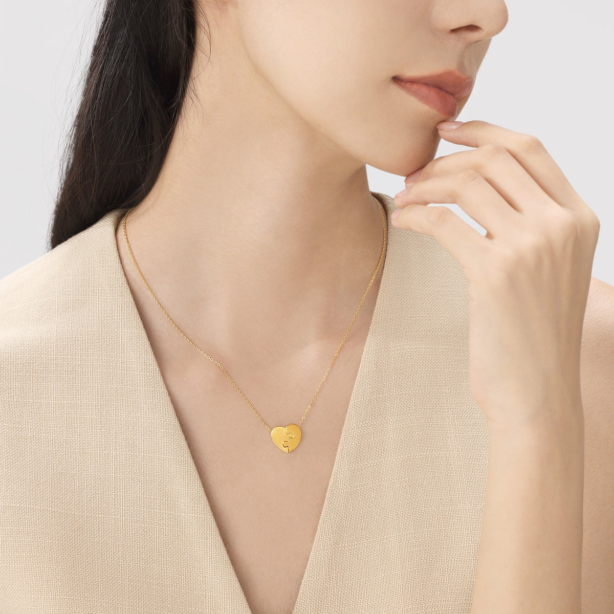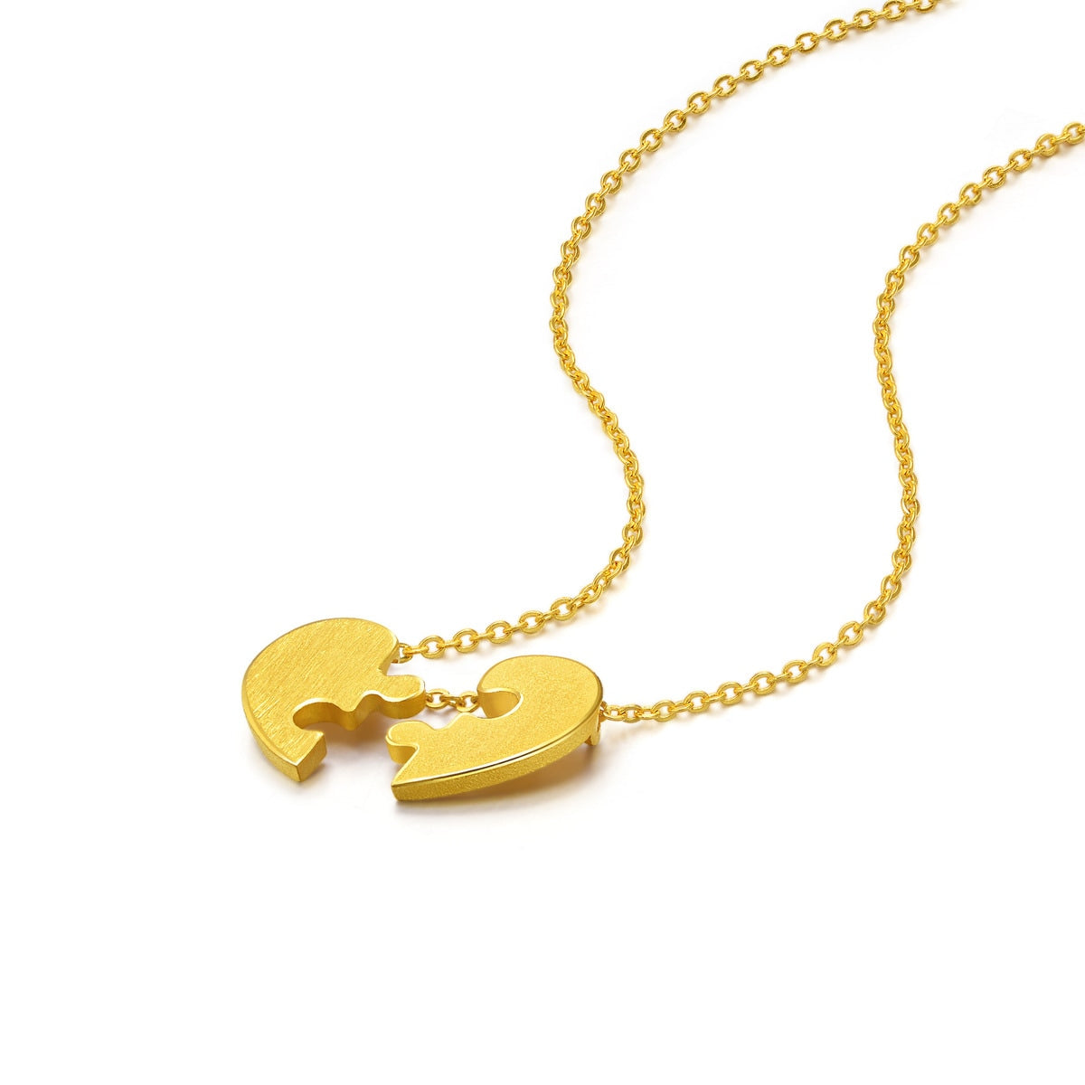 This 999.9 Gold Puzzles Necklace by Chow Sang Sang is inspired by jigsaw puzzles, symbolizing how the missing piece of your life can be brought close to your heart. A unique and thoughtful design for those who cherish meaningful accessories.