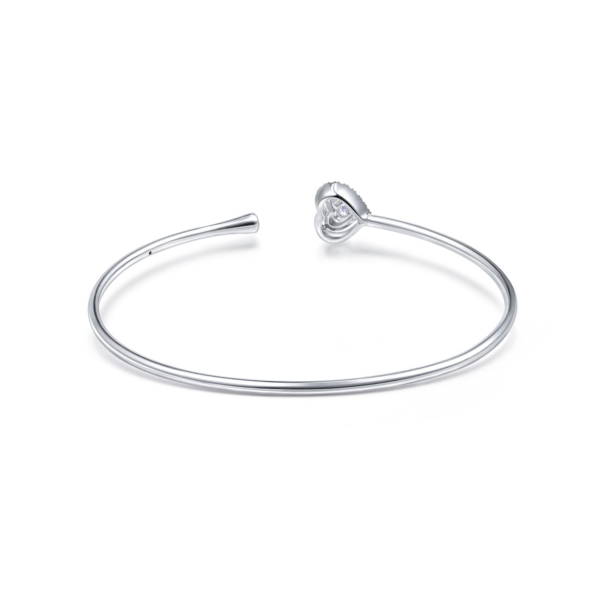 This 'Pure' 18K White Gold Diamond Bangle by Chow Sang Sang features a patented three-in-one heart-shaped Lady Heart Diamond, symbolizing love and devotion. The Lady Heart diamonds on both ends of the bangle further elevate its romantic essence.
