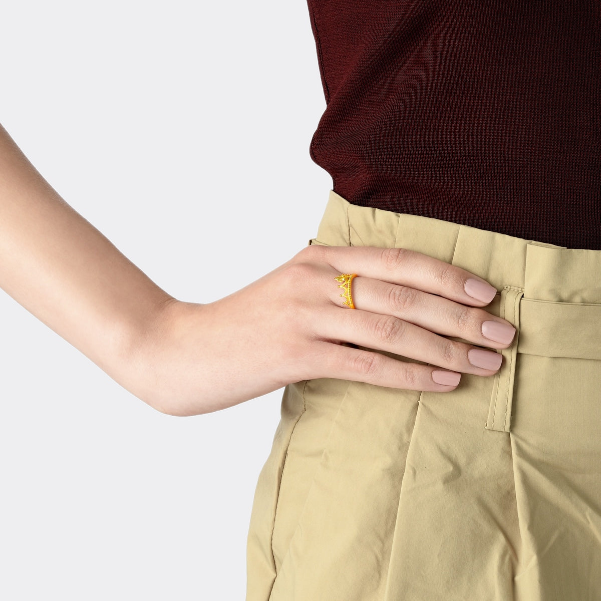 This 999.9 Gold Ring by Chow Sang Sang showcases a luxurious crown-inspired design. A symbol of love and grandeur, this ring reflects the essence of royalty and elegance, perfect for a special declaration of love.