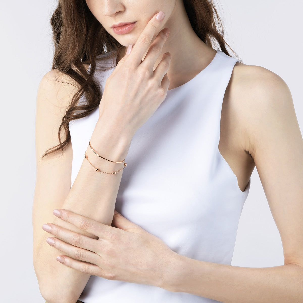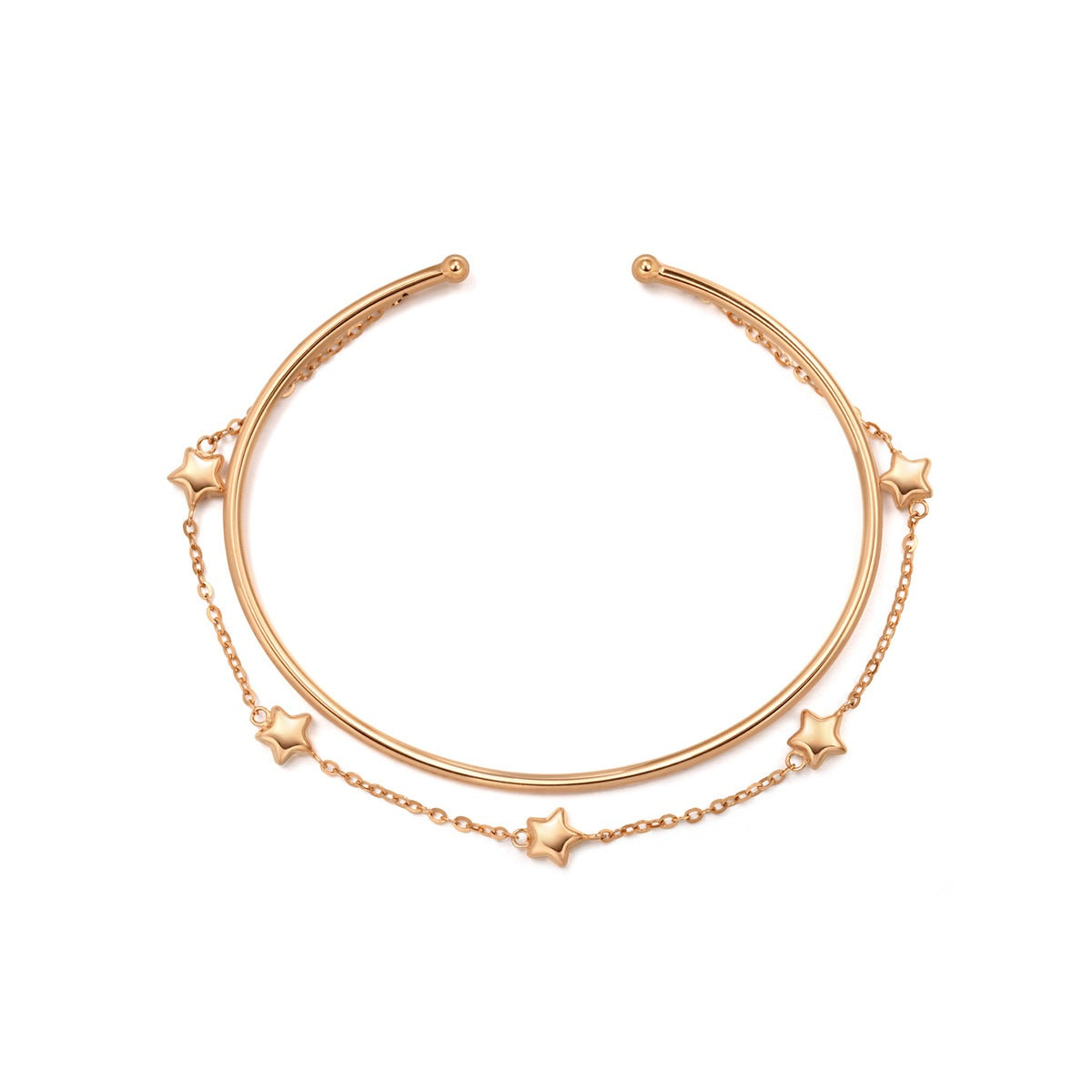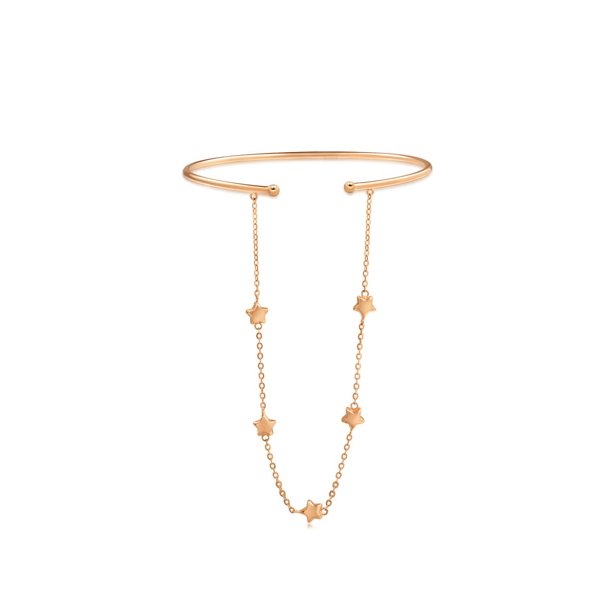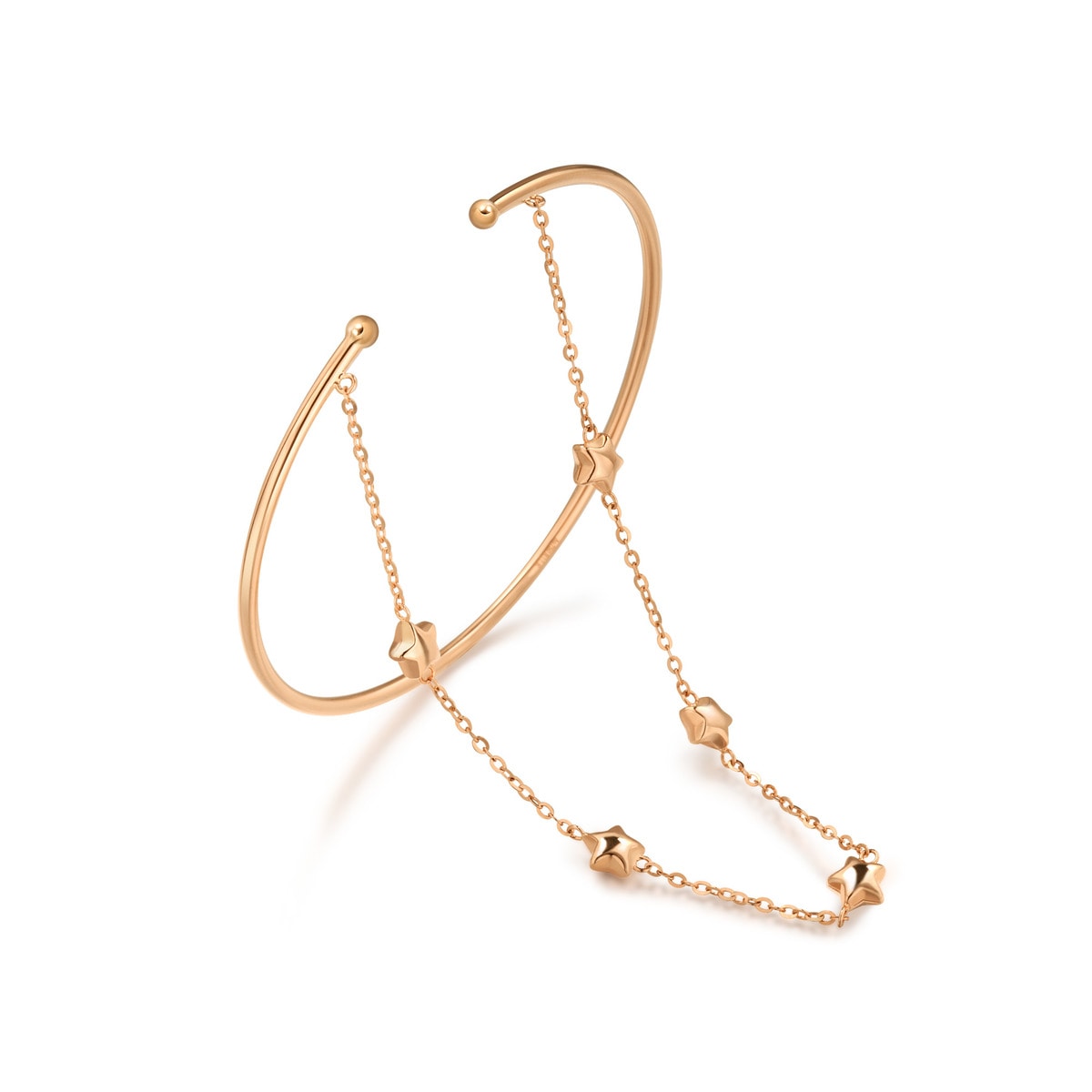 This Wrist Play 18K Rose Gold Bangle by Chow Sang Sang exudes delicate charm with its slim, open design. Linked by a firm bead chain, this versatile bangle can be worn layered or paired with rings, adding a playful and chic touch to your daily style.