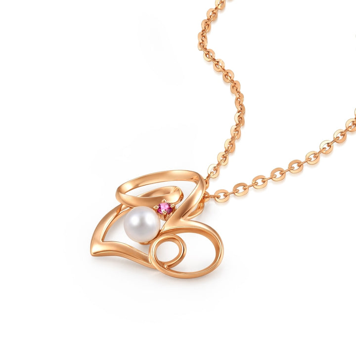 This Wishes 18K Rose Gold Akoya Pearl Pendant by Chow Sang Sang captures the essence of love with a heart and the word 'Love' entwined around a pearl and pink sapphire. The pendant strikes the perfect balance between stylishness and elegance.