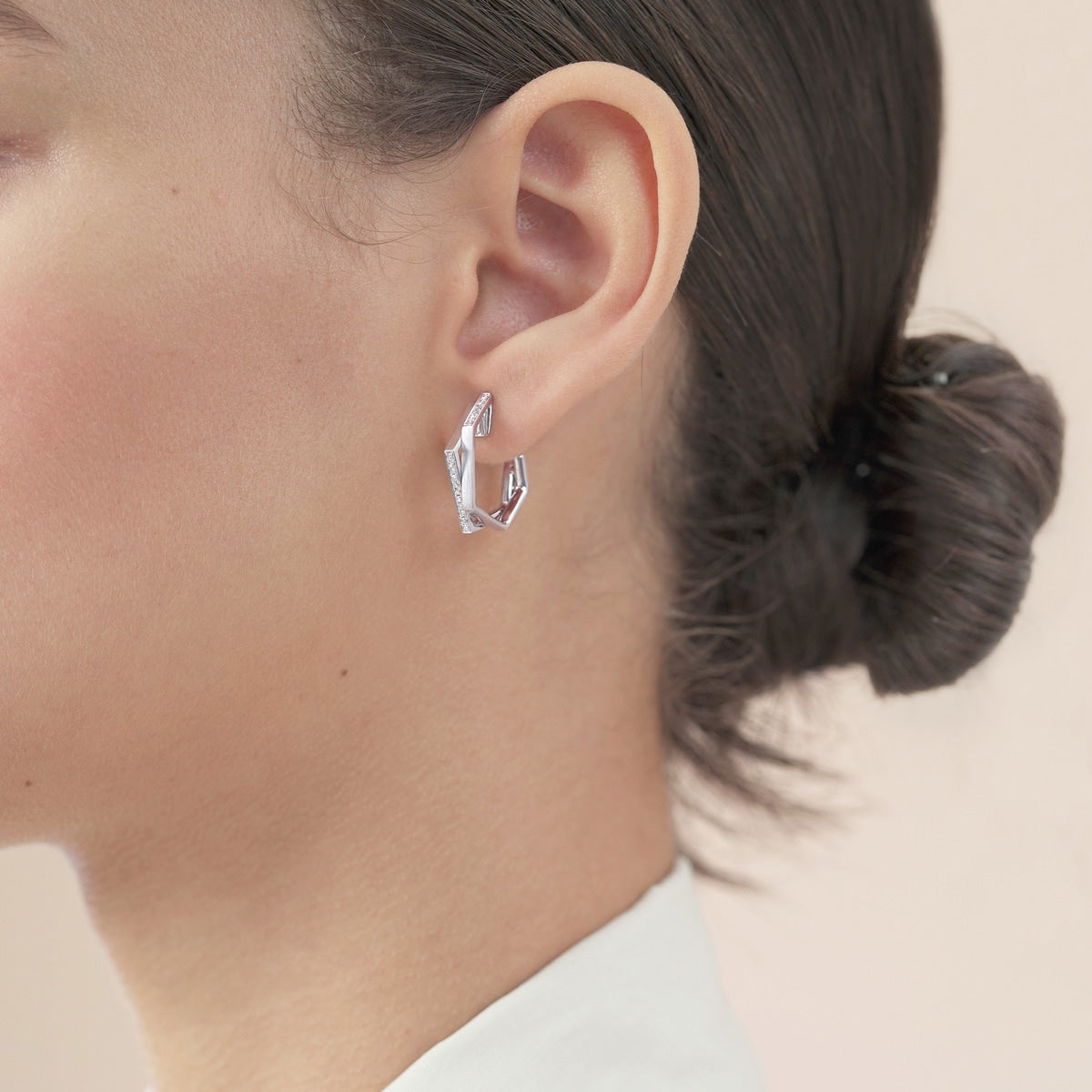 These M 18K White Gold Diamond Earrings by Chow Sang Sang exude modern elegance with their minimalist design. Set with radiant diamonds, they are a perfect blend of sophistication and versatility, adding a touch of brilliance to any look.