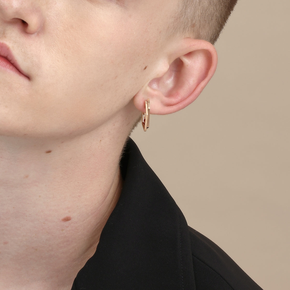 This M 18K Rose Gold Single Earring by Chow Sang Sang showcases modern minimalism, offering a sleek and elegant design that can be worn solo or stacked with other pieces for versatile styling.