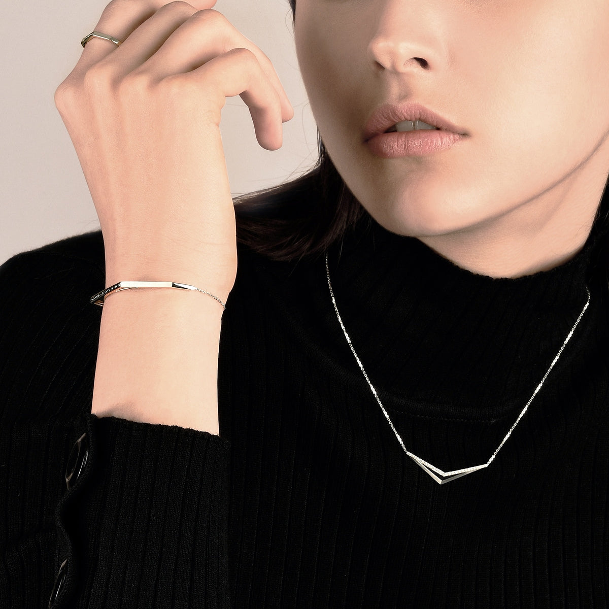 This M 18K White Gold Diamond Necklace by Chow Sang Sang embodies modern elegance with its minimalist design, featuring radiant diamonds that bring a touch of brilliance to everyday wear. A versatile piece that exudes sophistication and timeless beauty.