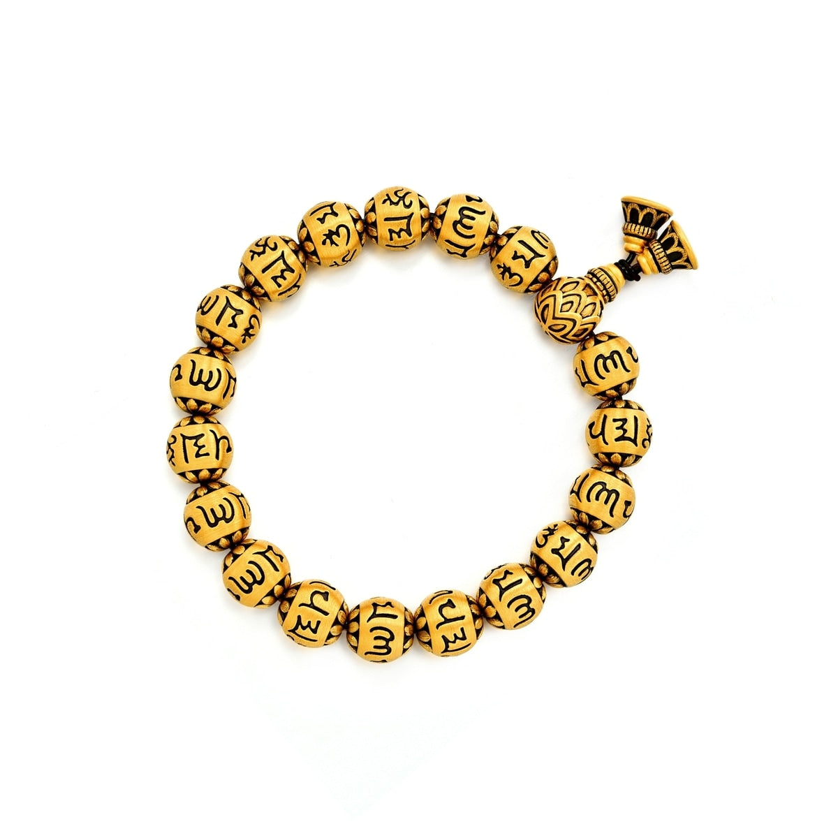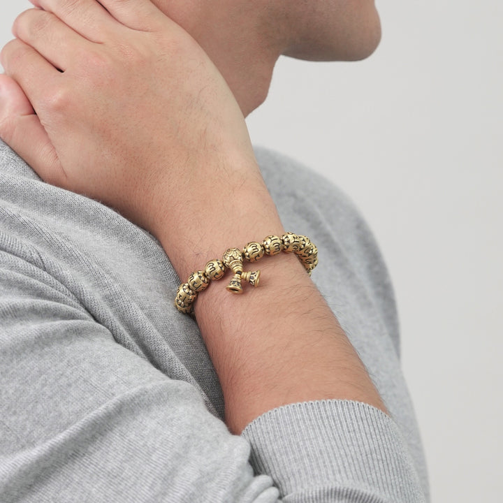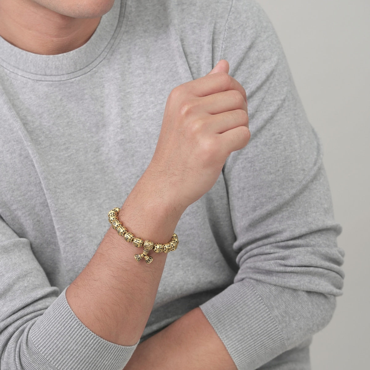 This Om Mani Padme Hum 999 Gold Bracelet by Chow Sang Sang is assembled with 18 pure gold beads, each engraved with the Mahayana Buddhist mantra “Om Mani Padme Hum.” Paired with a “calabash” accessory symbolizing luck and fortune, this bracelet offers the wearer protection and a fulfilled blessing.