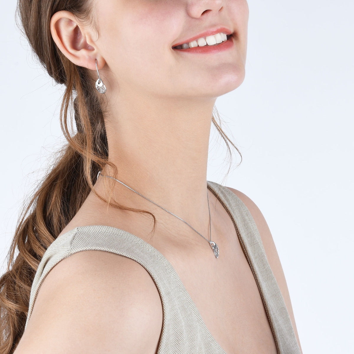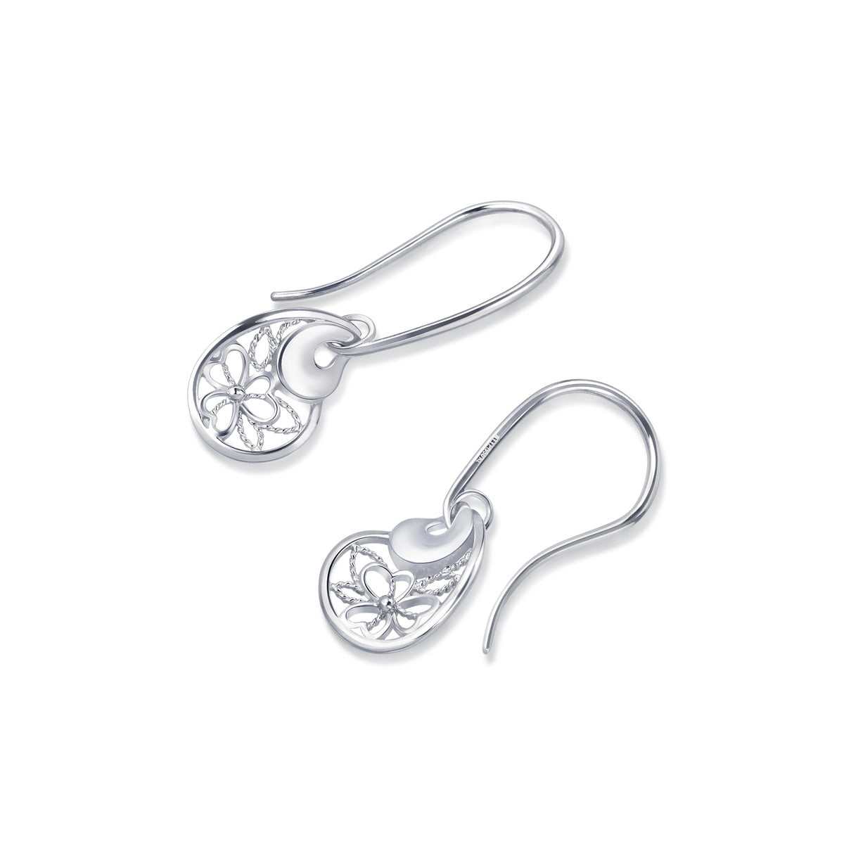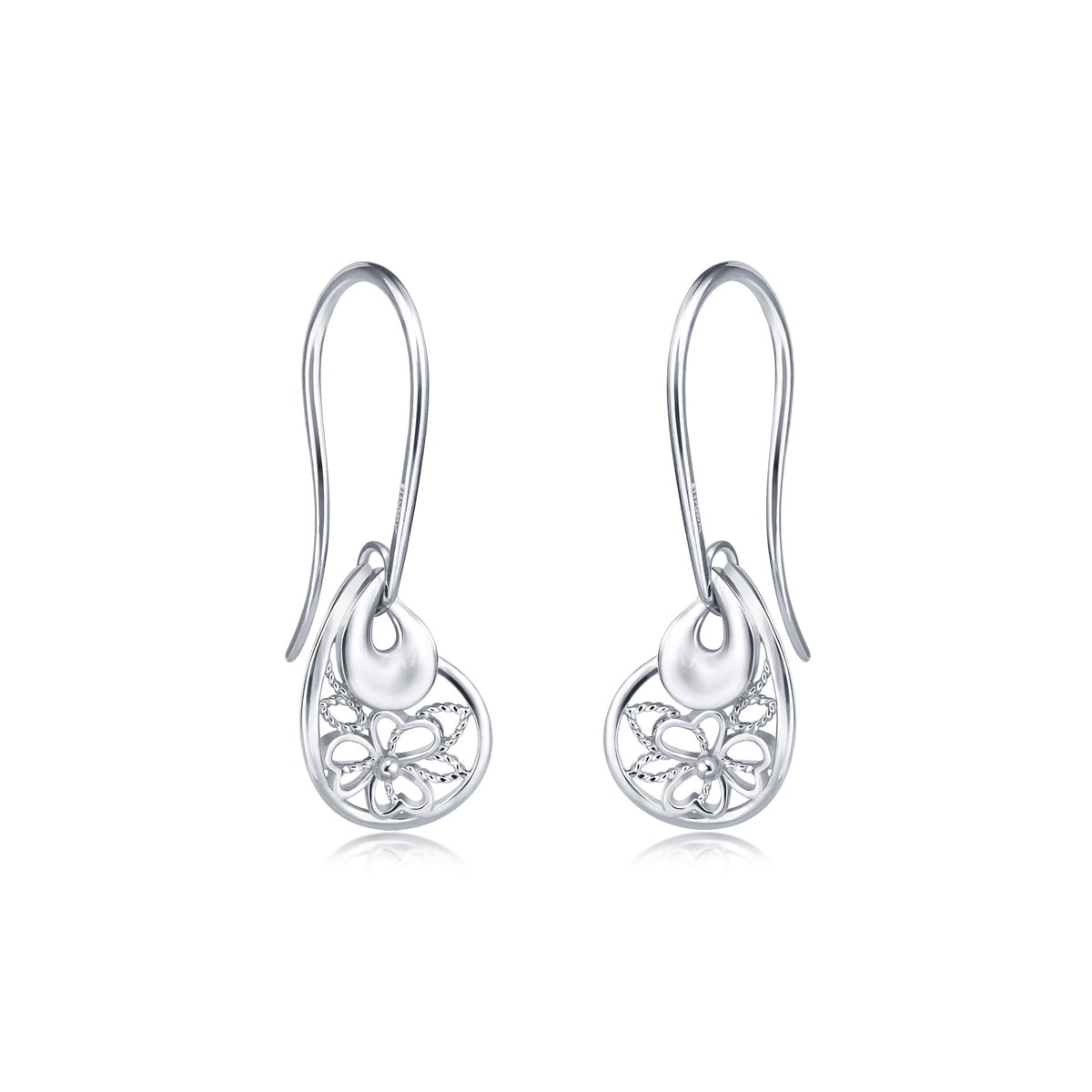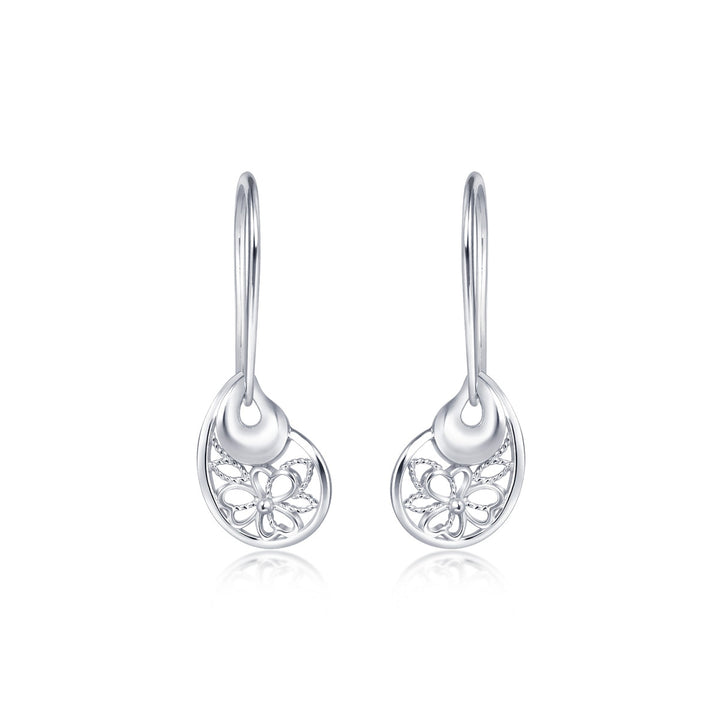 These 950 Platinum Butterfly Earrings by Chow Sang Sang are crafted with delicate filigree, inspired by Indian Orissa traditions. The elegant pear-shaped earrings feature polished reflective platinum plates contrasted with a brushed texture, accentuating the graceful lace patterns. A stunning blend of craftsmanship and elegance.