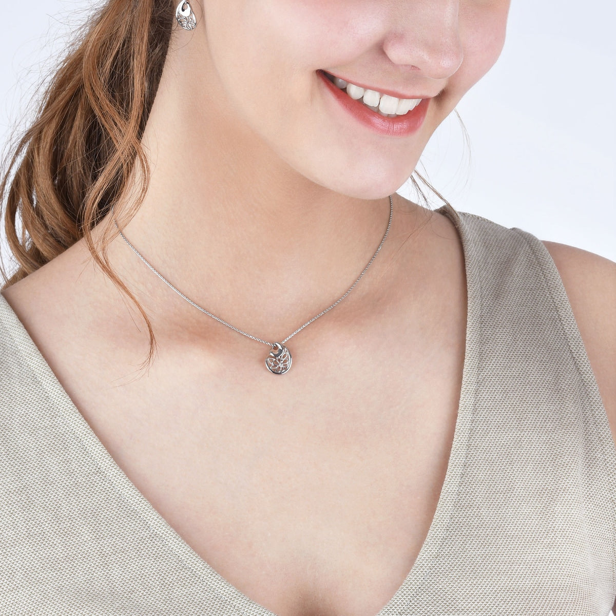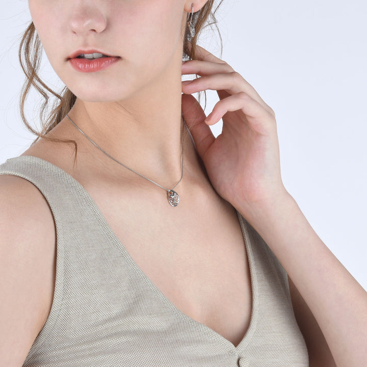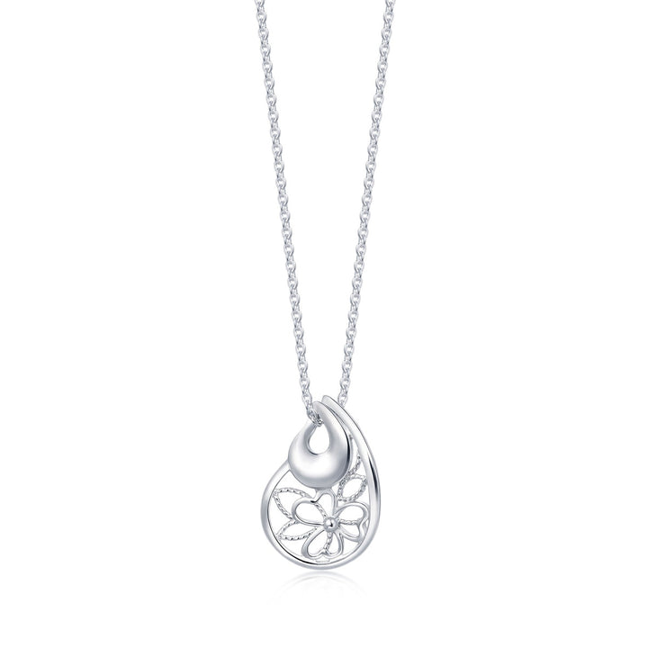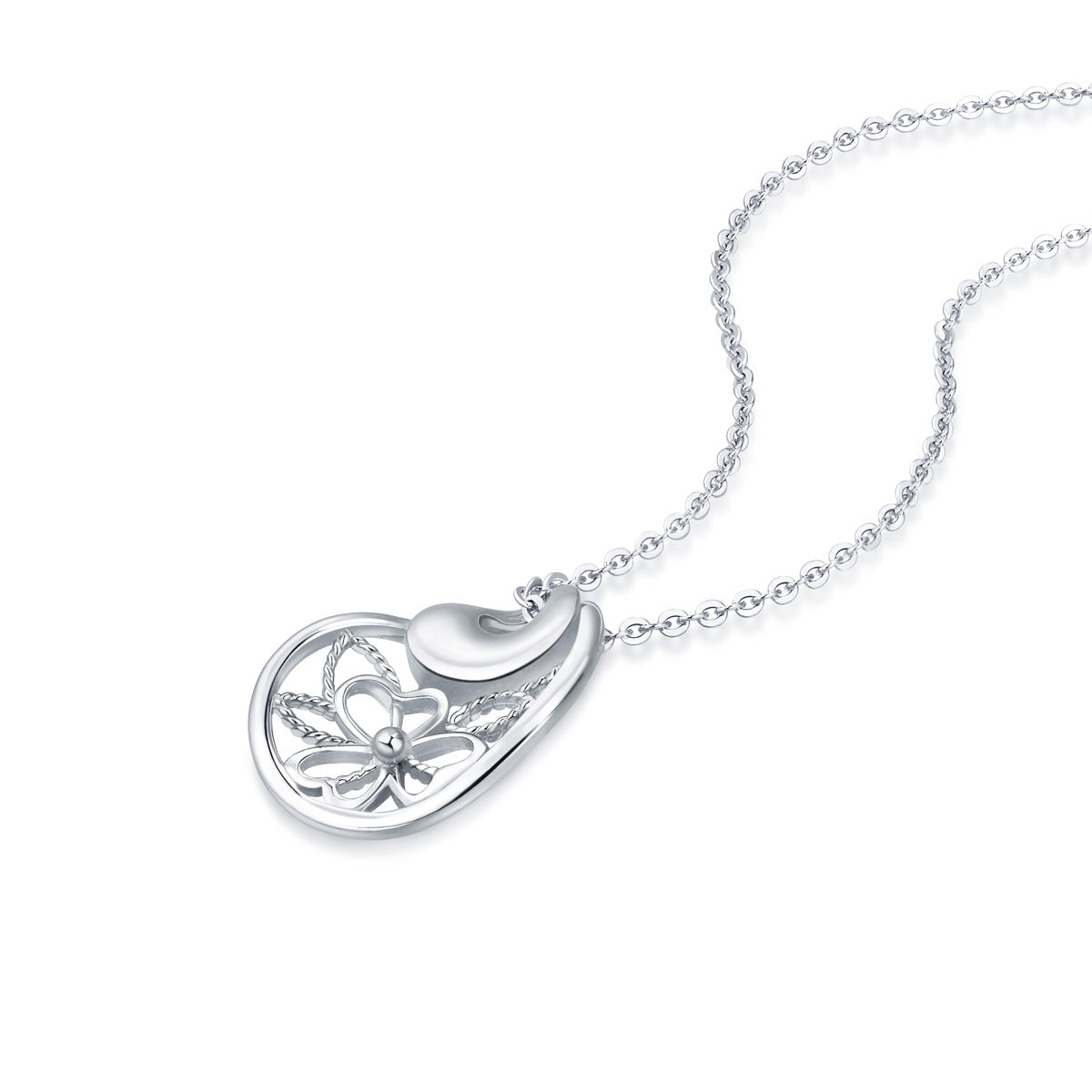 This 950 Platinum Pendant by Chow Sang Sang is forged under the delicate filigree craftsmanship of Indian Orissa traditions. The elegant pear-shaped pendant showcases polished platinum plates contrasted with a brushed texture, highlighting the refined lace-like patterns. A graceful and timeless design.