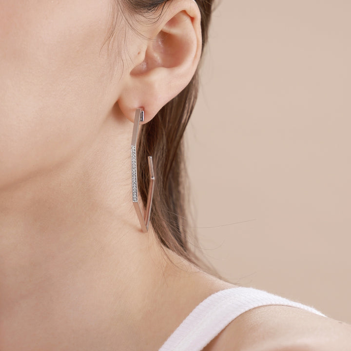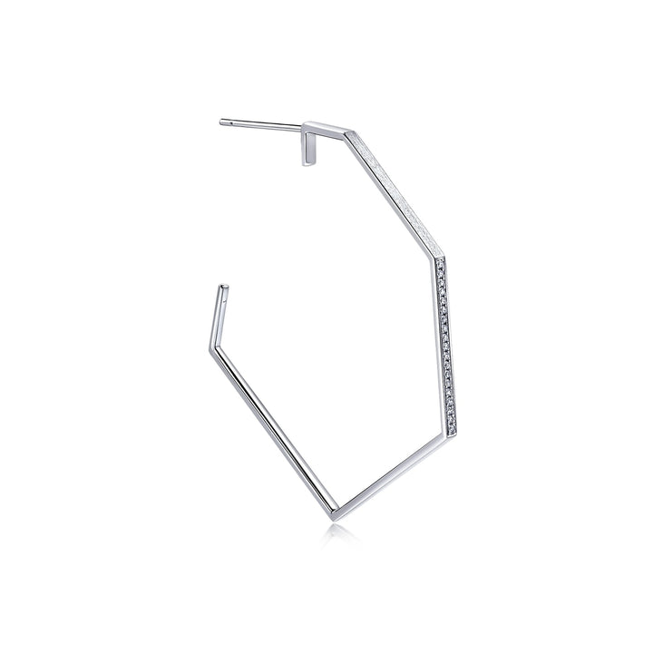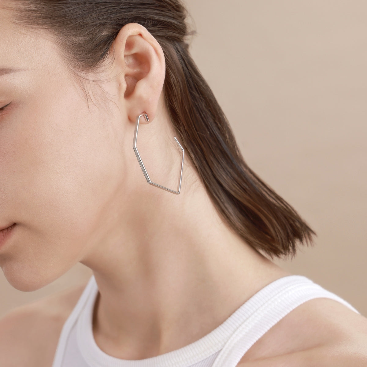 This M 18K White Gold Diamond Single Left Hoop Earring by Chow Sang Sang deconstructs the brand’s logo with geometric precision. Adorned with radiant diamonds, this single earring offers versatile elegance, perfect for stacking or wearing solo.