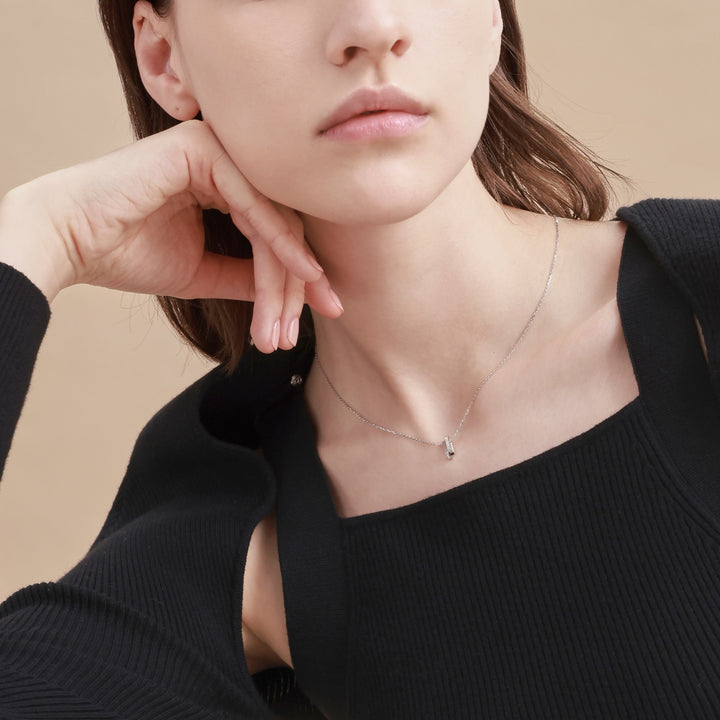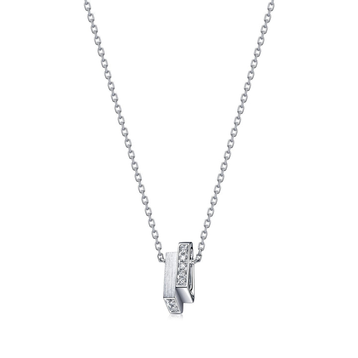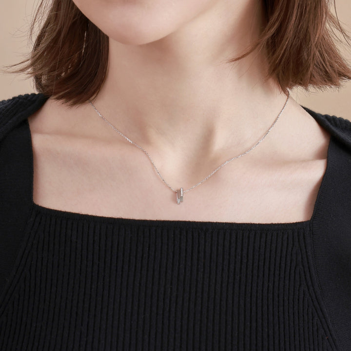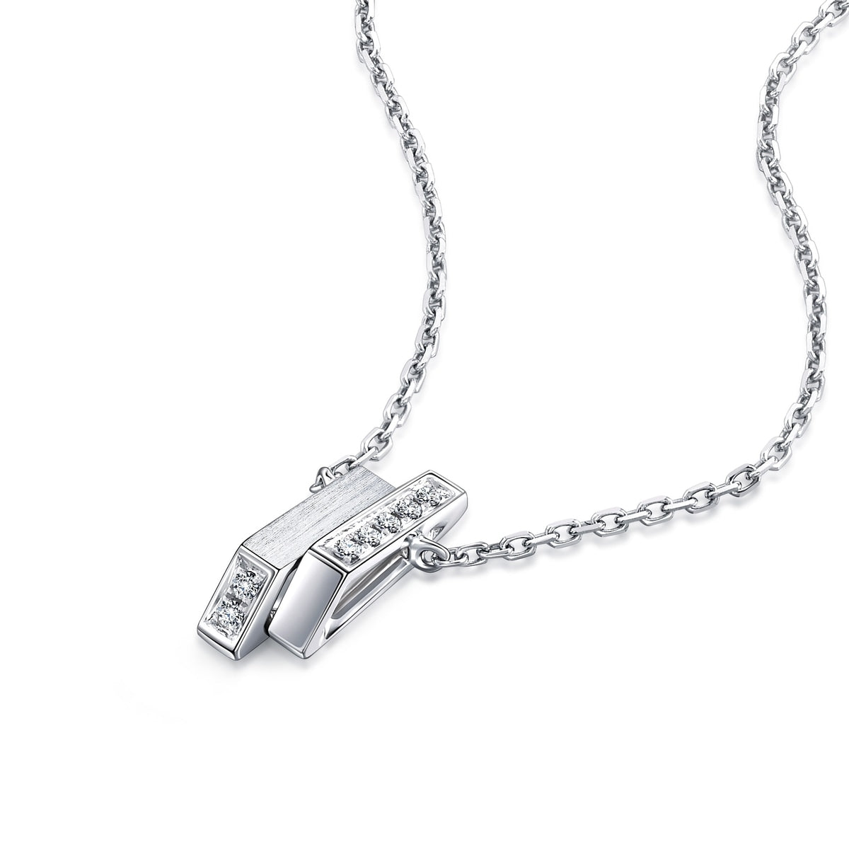 This M 18K White Gold Diamond Necklace by Chow Sang Sang blends modern design with geometric elegance, featuring irregularly bound double rings. Set with brilliant diamonds, this necklace is a versatile piece that embodies timeless sophistication.