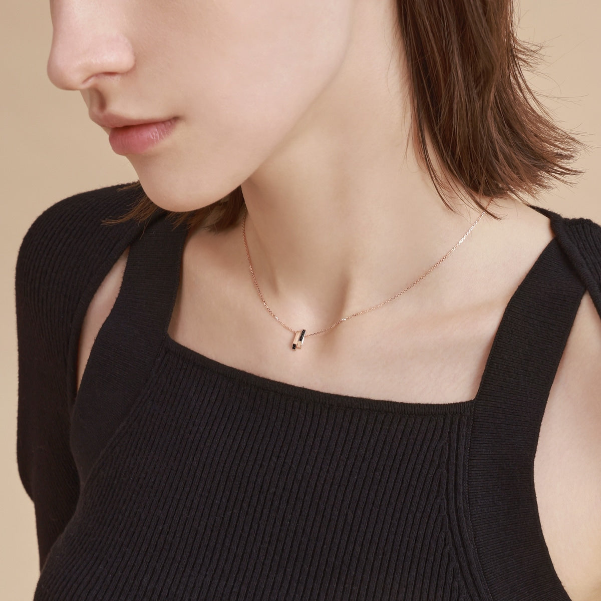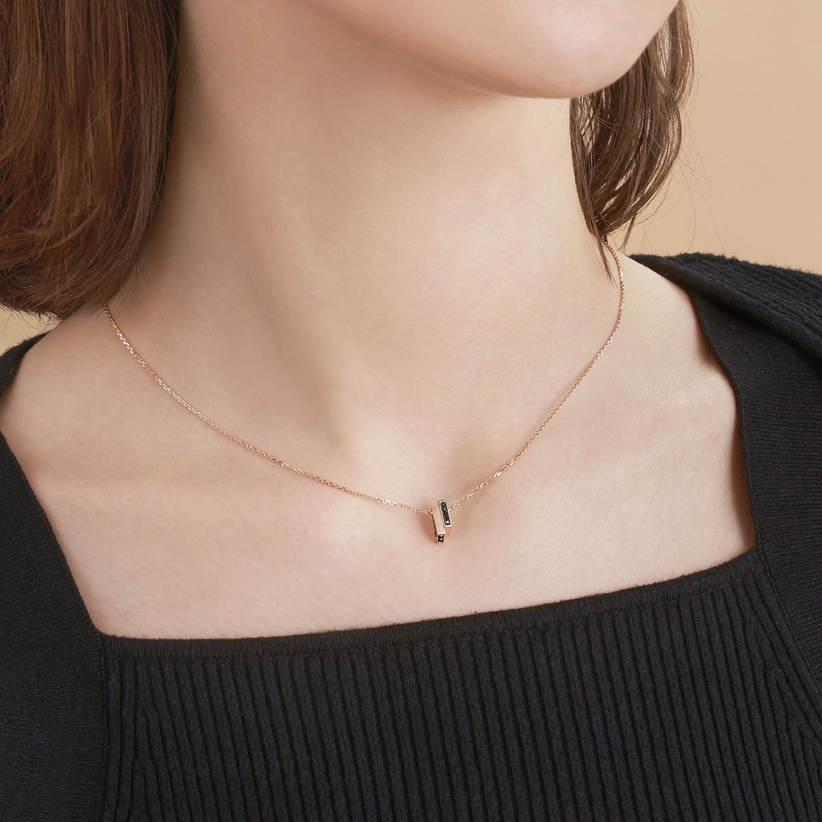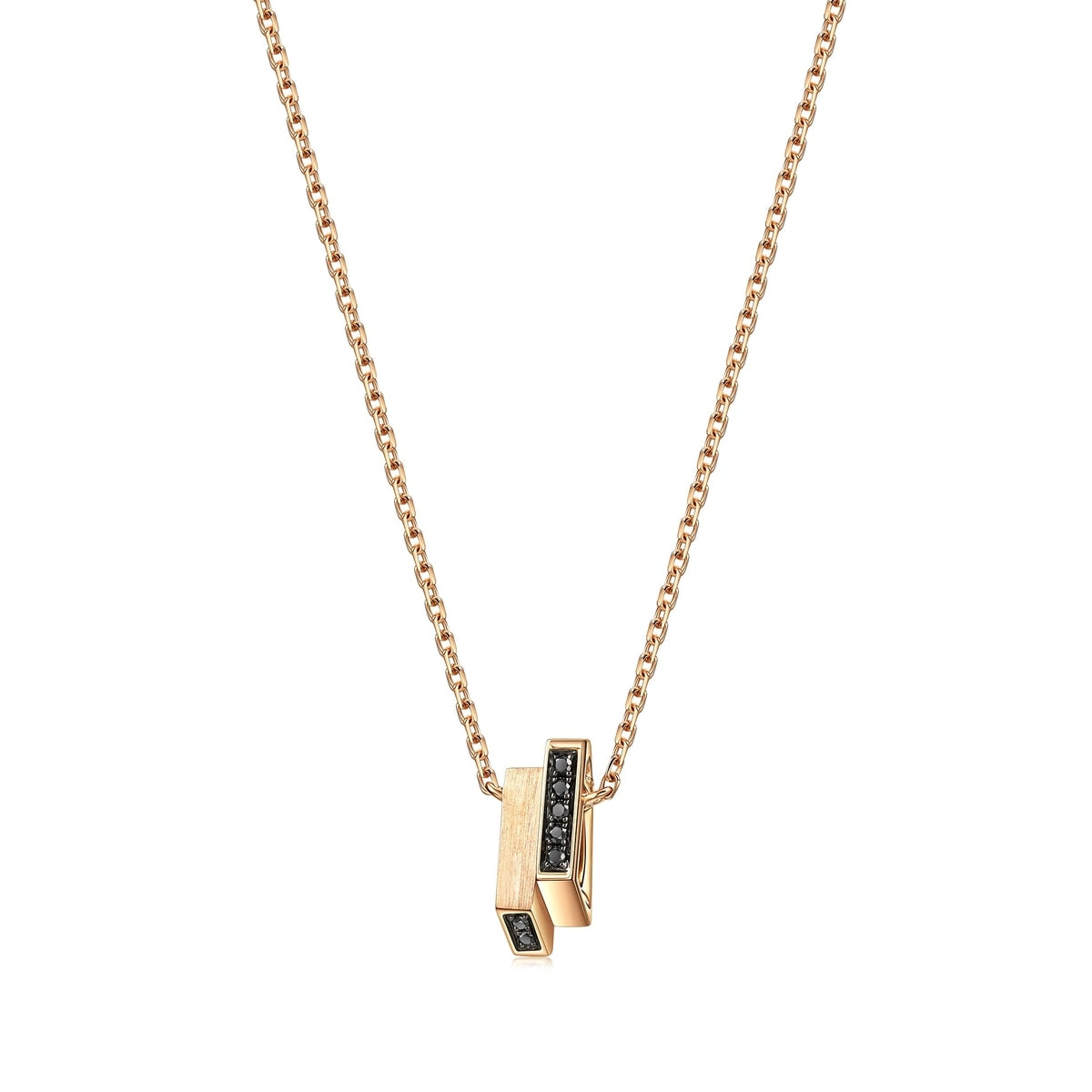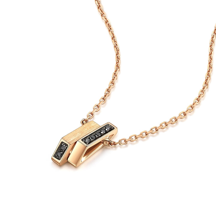 Handcrafted in 18K rose and black gold, featuring 0.03 carats of treated black diamonds. Weighs approximately 0.066 tael (~2.47g), with a 42cm chain length.