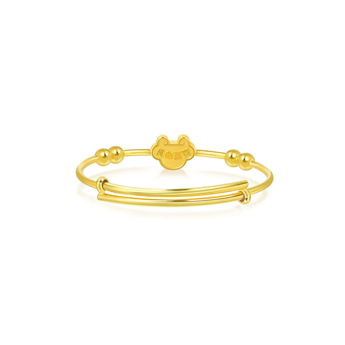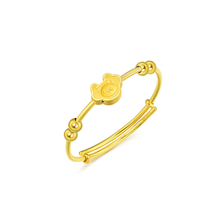 This New Born 999.9 Gold Baby Bangle by Chow Sang Sang brings cheerful blessings of health and happiness to newborns with its dainty and beautiful design. Featuring a ruyi piggy motif, this bangle is a perfect symbol of joy and protection for the little one.