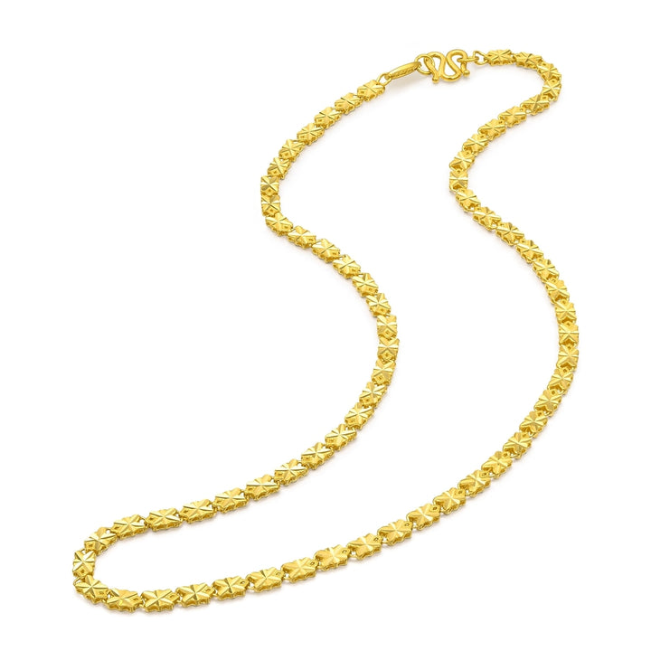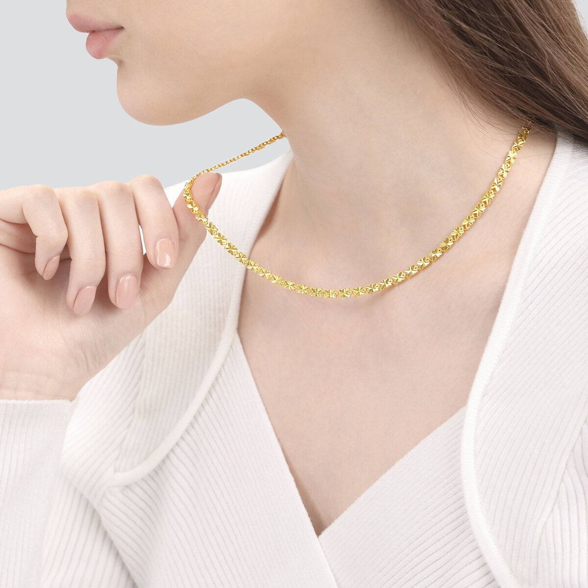 This 999.9 Gold Necklace by Chow Sang Sang exudes luxury and elegance, perfect for adding a touch of sophistication to your ensemble. Its sleek and radiant design highlights the beauty of pure gold.