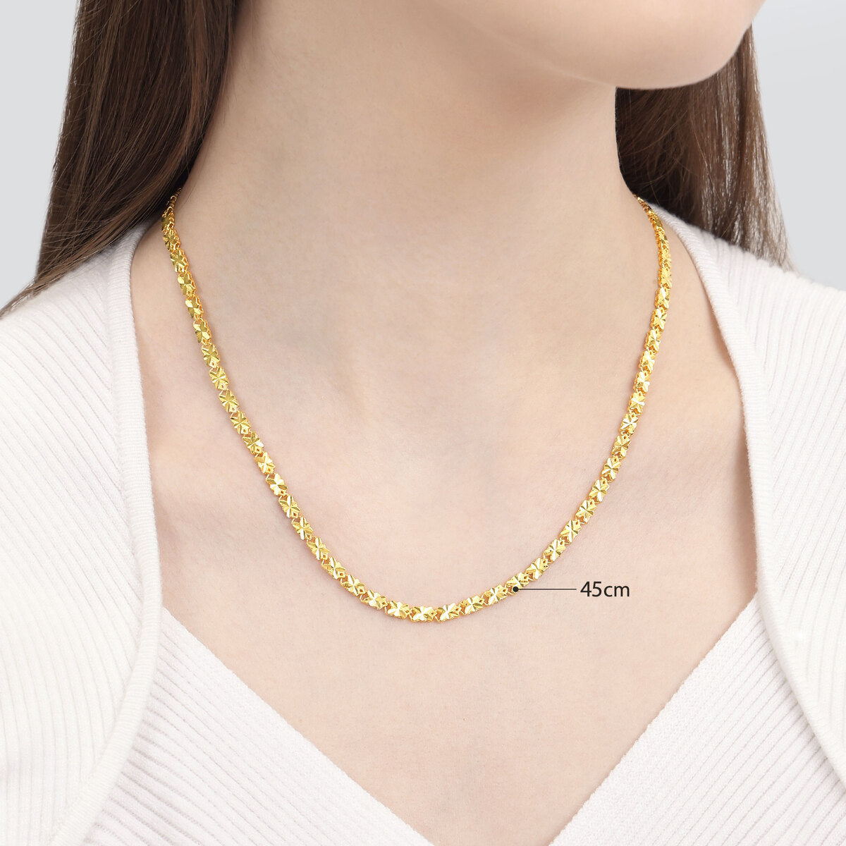 Handcrafted in 999.9 gold, weighing approximately 0.517 tael (~19.351g), with a 45cm chain length.