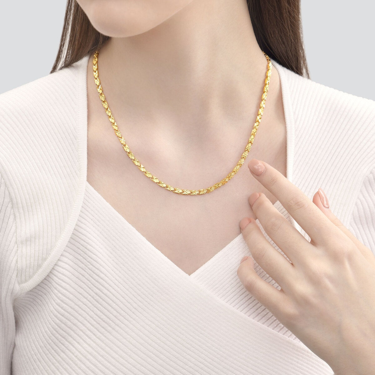 This 999.9 Gold Necklace by Chow Sang Sang is a striking and elegant piece, crafted from the finest gold. Its substantial weight and sleek design make it a luxurious statement necklace that enhances any outfit.