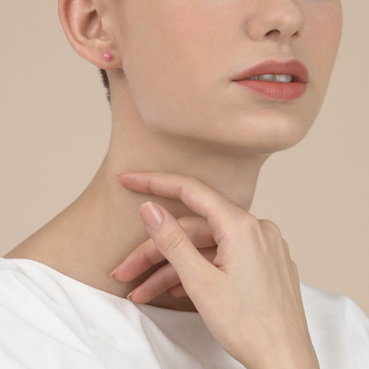 Handcrafted in 18K rose gold, featuring rhodochrosite. Weighs approximately 0.012 tael (~0.449g).