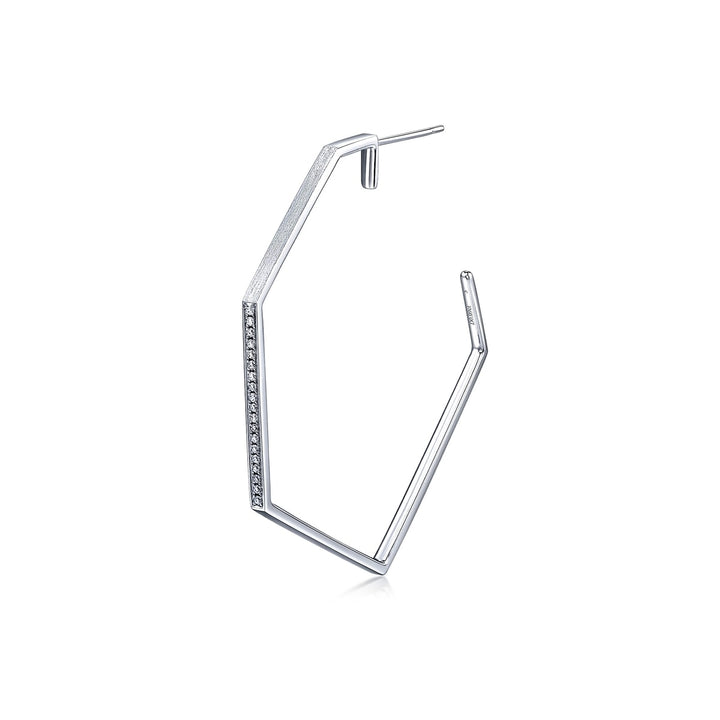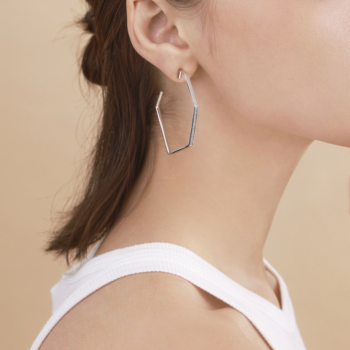 This M 18K White Gold Diamond Single Right Hoop Earring by Chow Sang Sang features an angular, geometric design inspired by the brand's logo. Adorned with ravishing diamonds, this earring adds versatility and elegance to any look.