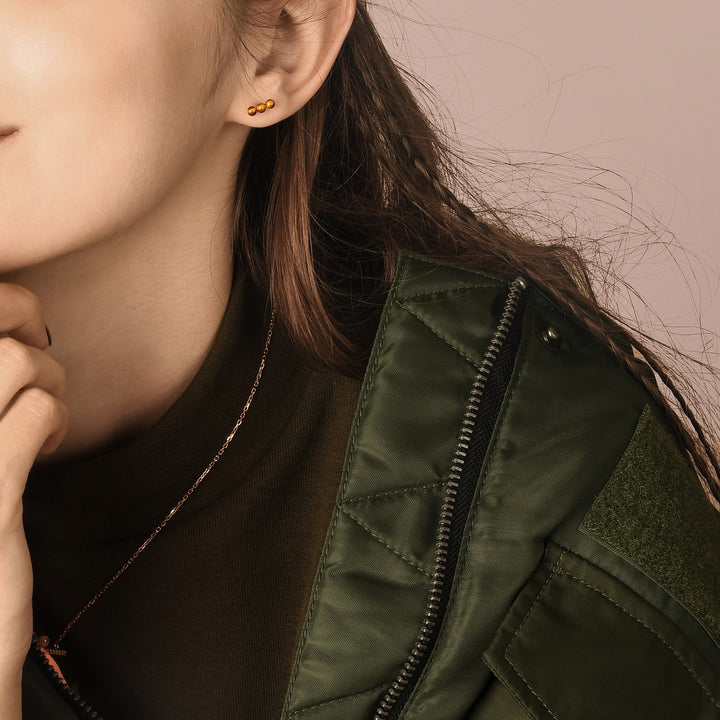 Handcrafted in 18K rose gold, featuring tiger's-eye. Weighs approximately 0.016 tael (~0.599g).