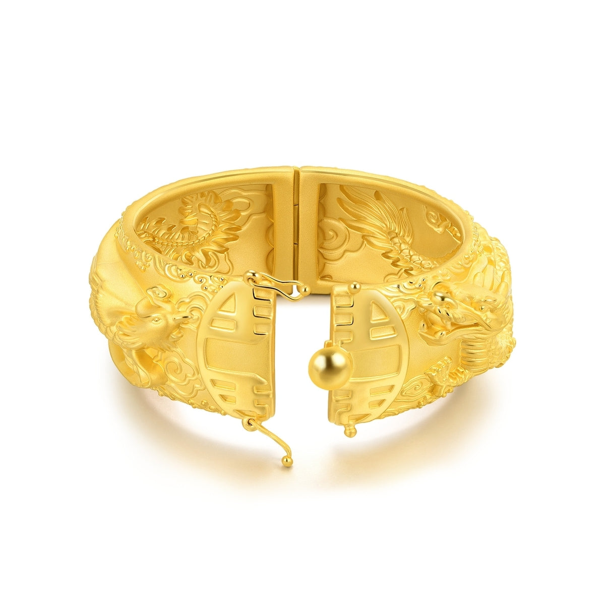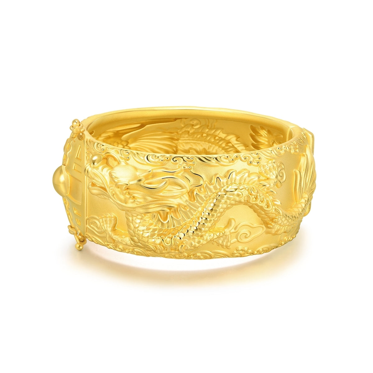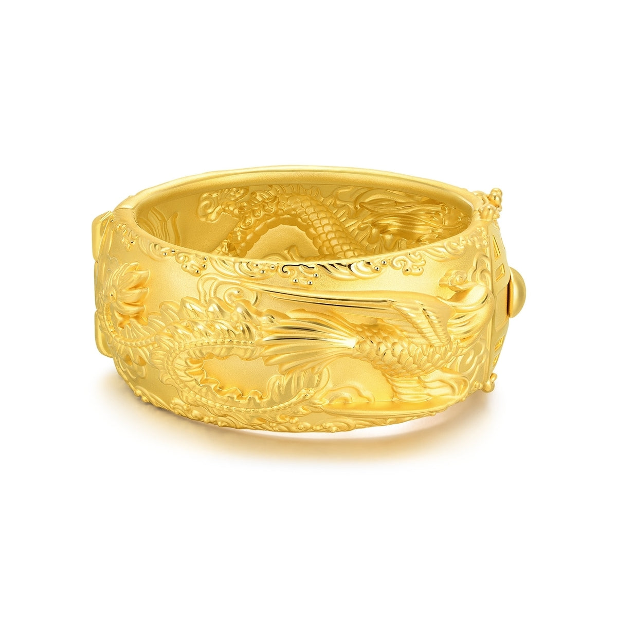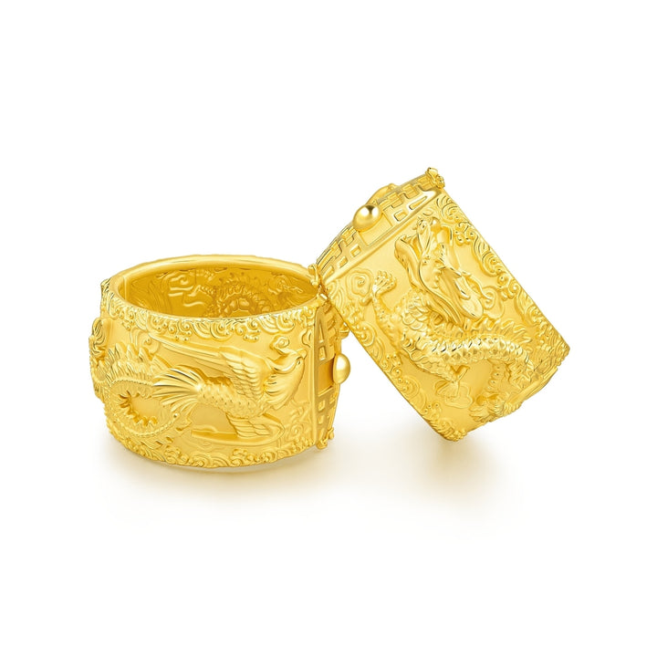 This Dragon & Phoenix 999.9 Gold Bangle by Chow Sang Sang symbolizes unity, balance, and power, representing the legendary harmony between the dragon and phoenix. The intricate design brings an air of sophistication to the wearer.