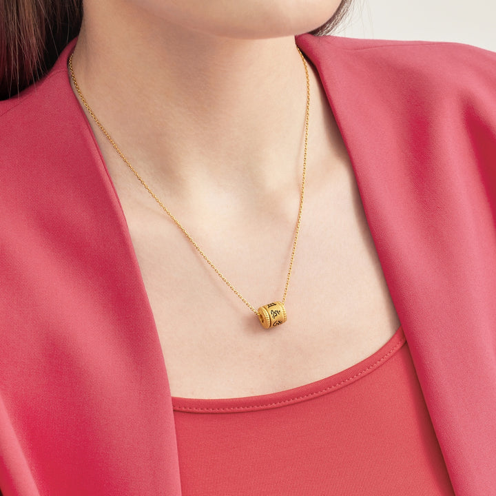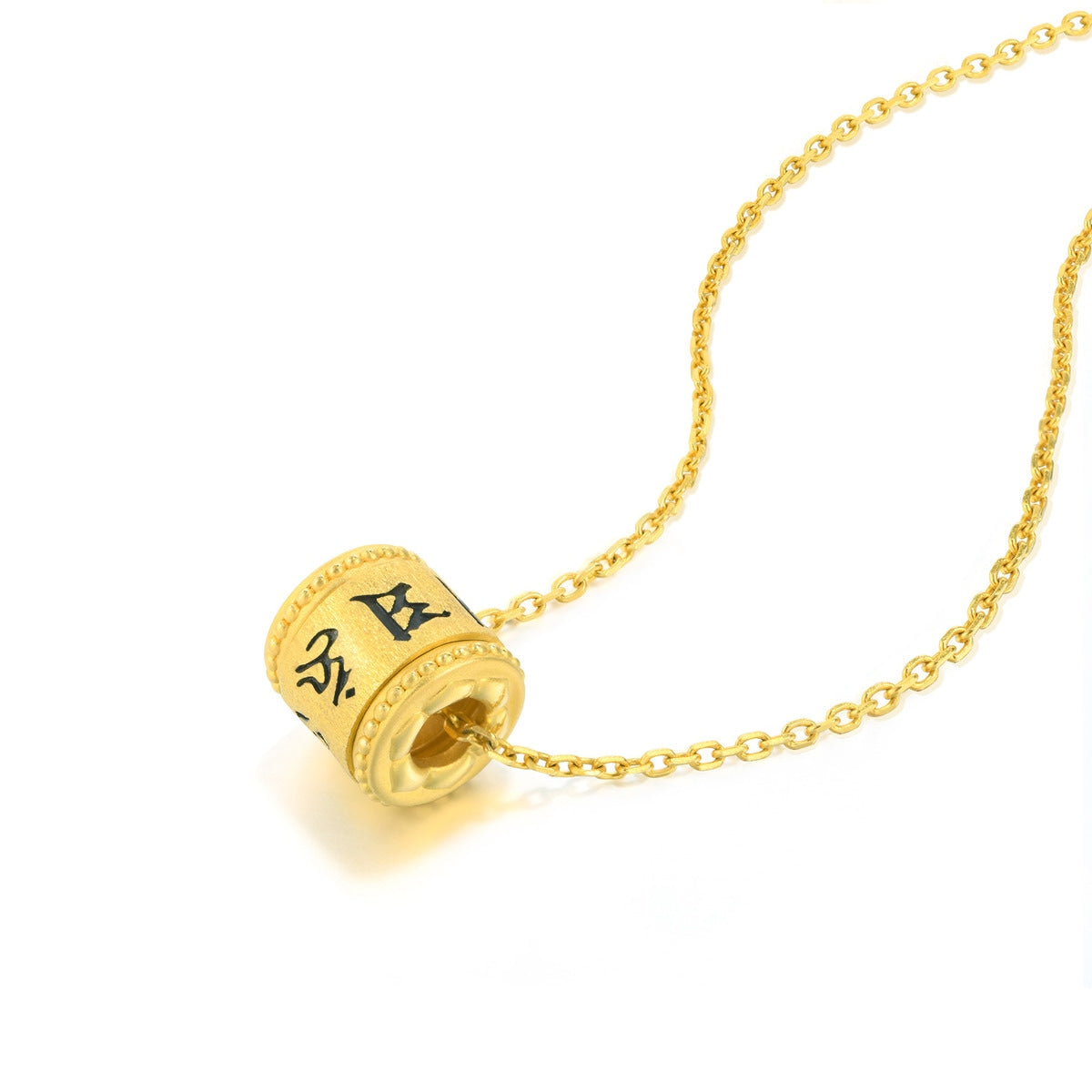 This Om Mani Padme Hum 999 Gold Pendant by Chow Sang Sang is inspired by the structure of a revolving prayer wheel, where each spin symbolizes a recitation of the mantra. Electroplating enhances the distinctiveness of this sacred Mahayana Buddhist mantra, believed to bring immense protection through consistent chanting.