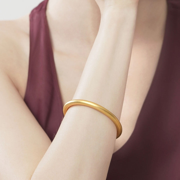 This Oriental 999.9 Gold Bangle by Chow Sang Sang combines traditional craftsmanship with modern elegance. The substantial weight and fine detailing make it a bold and luxurious statement piece, perfect for those who appreciate cultural symbolism and timeless style.