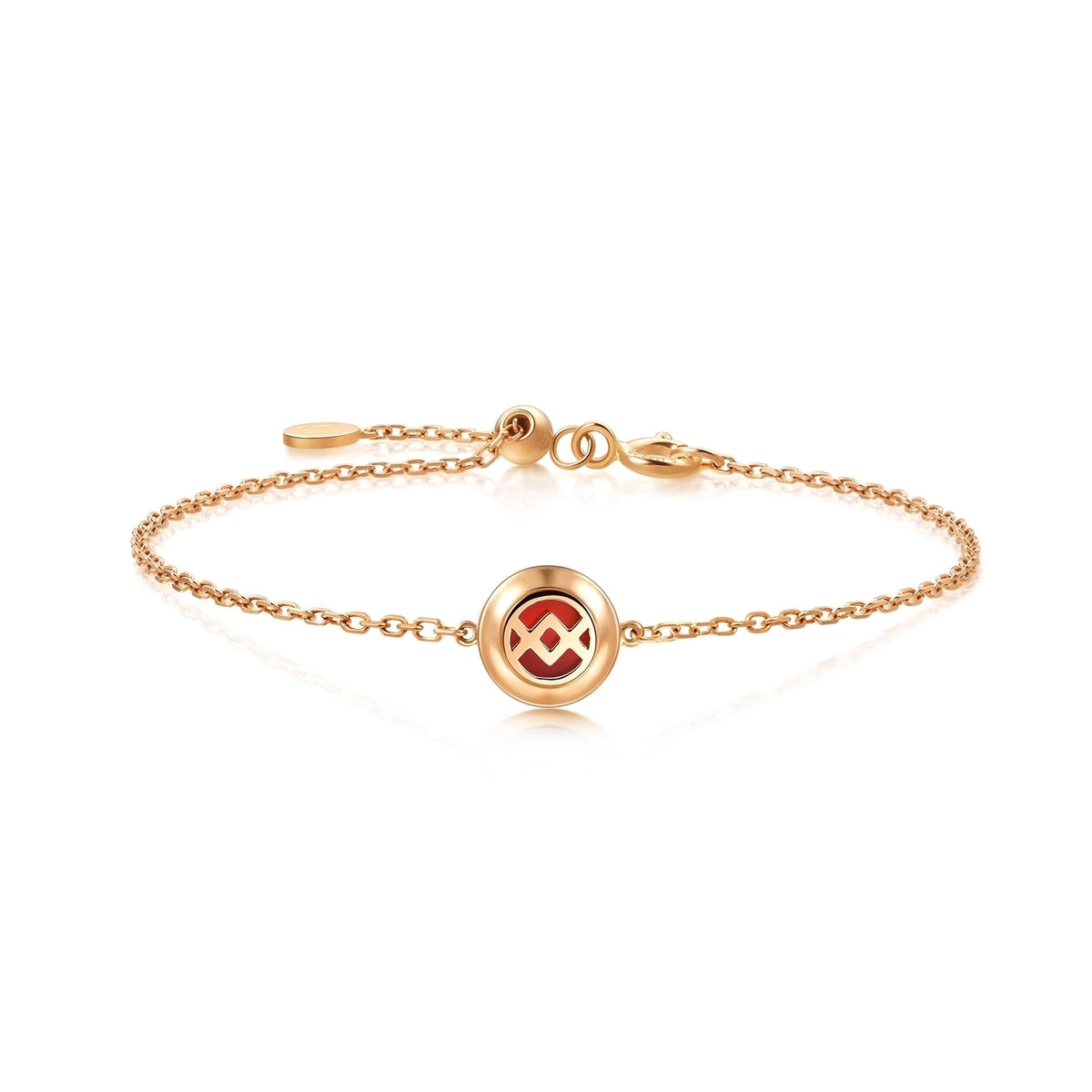 This Timeless 18K Rose Gold Chalcedony Bracelet by Chow Sang Sang is a limited edition piece perfect for festive occasions. The bezel-set red chalcedony exudes grace and joy, with its warm color symbolizing fulfillment. Its celebratory charm makes it an ideal accessory for any occasion.